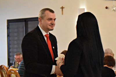 Zgodnie z przyjętym zwyczajem, po wspólnej modlitwie ks. Demarczyk pobłogosławił opłatki, którymi uczestnicy łamali się składając sobie nawzajem życzenia świąteczno-noworoczne. Następnie wszyscy usiedli do tradycyjnej wieczerzy wigilijnej.