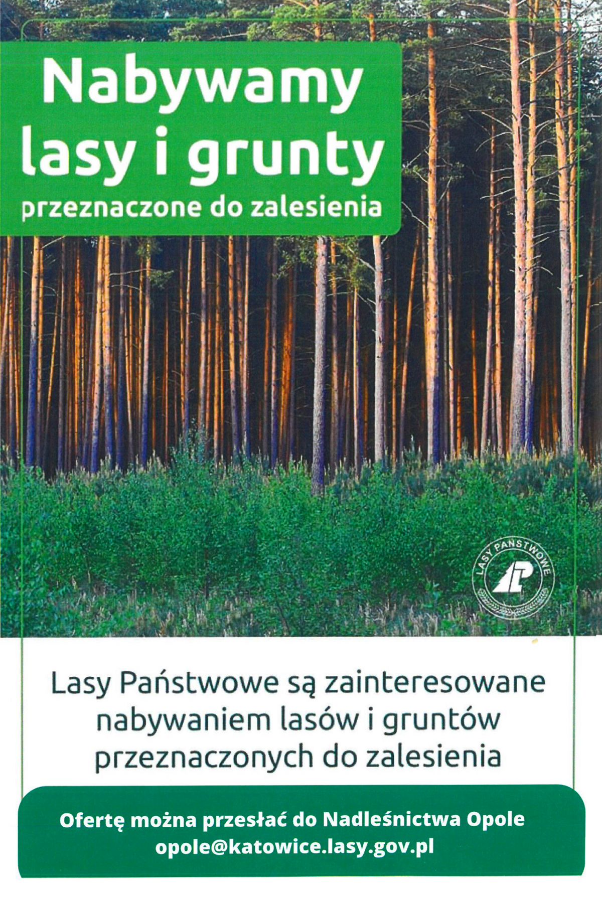 Nadleśnictwo Opole jest zainteresowane zakupem lasów oraz gruntów przeznaczonych do zalesienia.