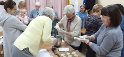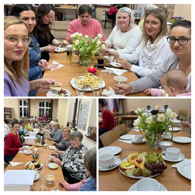 Na zakończenie wszystkie panie wykonały mały torcik w kształcie serca oraz tarty owocowe, które można było zabrać ze sobą i poczęstować nimi domowników. Zajęcia kulinarne trwały cztery godziny, a smaczny gulasz, podany z upieczonym poza świetlicą chlebem, był daniem finalnym. Jesteśmy pełni podziwu dla pani Beaty za przygotowanie produktów do tak bogatej karty dań dla prawie dwudziestu osób oraz zgłębianie tajników kulinarnych.