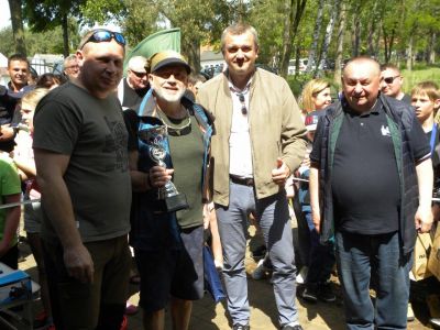 Przy okazji jubileuszu nie mogło zabraknąć podziękowań dla organizatorów. Burmistrz Mirosław Wieszołek wręczył podziękowanie dla Koła PZW Małapanew w Ozimku na ręce głównego organizatora zawodów Wiesława Misia. Ten z kolei przekazał podziękowania ich wieloletnim, sprawdzonym sponsorom.