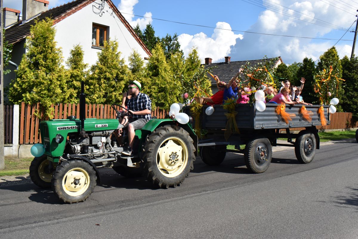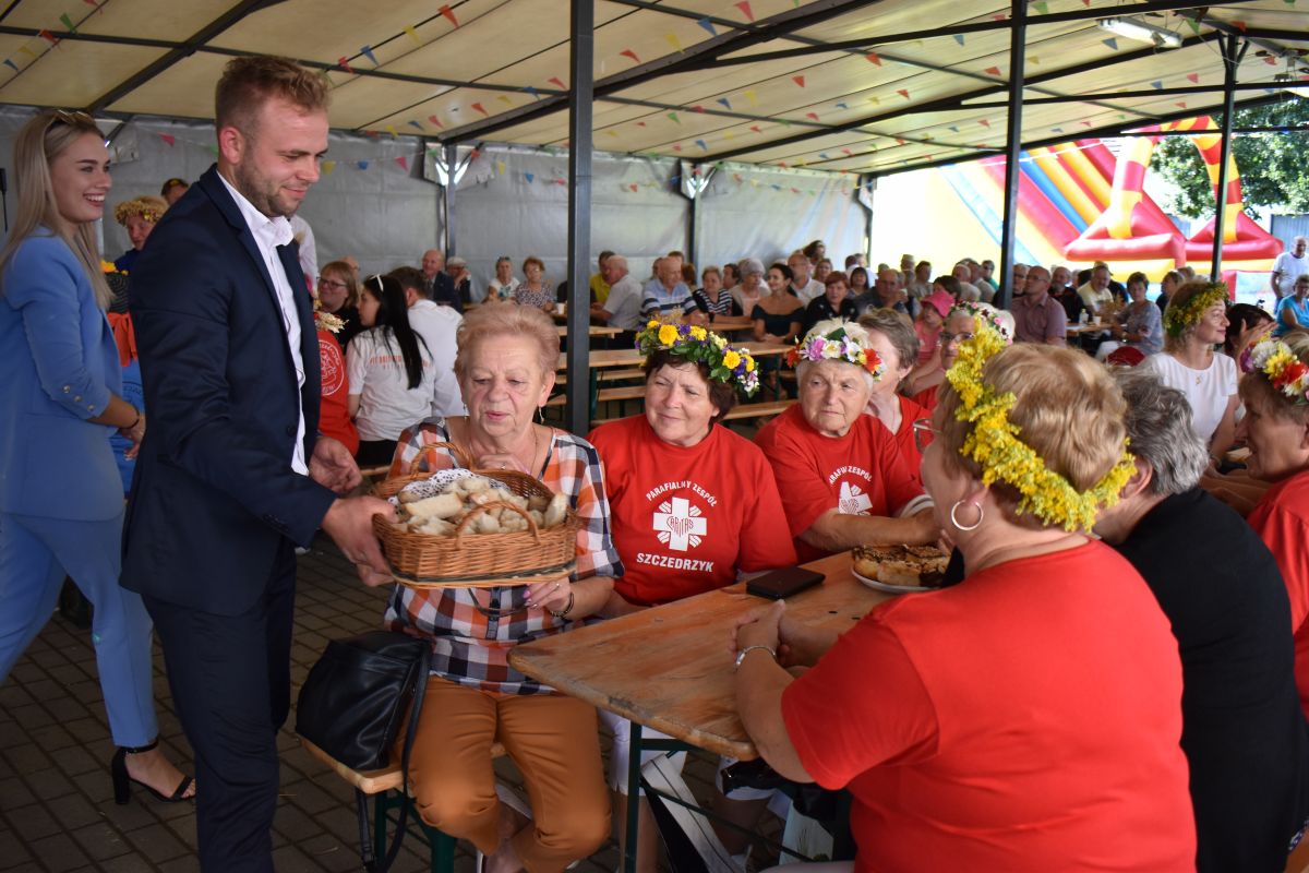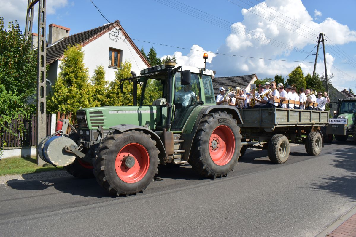 Żniwniok w Szczedrzyku rozpoczął się mszy św. dziękczynnej, celebrowaną przez ks. proboszcza Krzysztofa Matysek, i barwnego korowodu, który przejechał ulicami wsi zaprosiwszy mieszkańców i gości na miejsce uroczystości - plac św. Mikołaja.