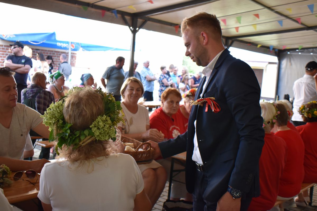 Członkowie Rady Sołeckiej ceremonialnie wnieśli koronę dożynkową z asystą Orkiestry Dętej Szczedrzyk. Starostowie dożynek Rafał Joniec i Natalia Franczyk przekazali Burmistrzowi Ozimka Mirosławowi Wieszołkowi chleb dożynkowy, który podzielono sprawiedliwie wśród zgromadzonych. Następnie rozpoczęła się część artystyczna, podczas której wystąpili: Orkiestra Dęta Szczedrzyk, chór Dan Berg oraz artyści Studia eM.