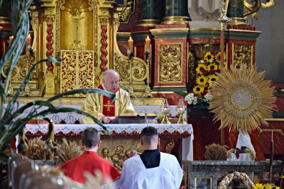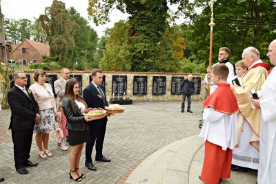 W niedzielę, dnia 1 października odbyła się w kościele parafialnym w Krasiejowie uroczysta suma dożynkowa. W asyście ks. Józefa Gorki i sztandarów starostowie dożynek Michał i Sandra Pykowie oraz zaproszeni gości weszli do kościoła, gdzie oczekiwała na zebranych misternie wykonana korona. Starostowie przekazali na ręce proboszcza chleb dożynkowy i kosz z winogronami. W swej homilii duszpasterz zwrócił uwagę na wartość chleba i szacunek do niego.