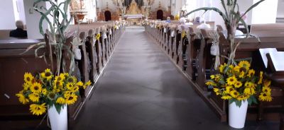 Dziękujemy Sołtysowi Wsi Krasiejów i jego żonie oraz siostrom zakonnym za pracę włożoną w piękne udekorowanie ołtarza i kościoła. Już przy wejściu na wchodzących oczekiwały bukiety słoneczników, a wzdłuż nawy głównej zawieszone były opisane woreczki ze źdźbłami zbóż zebranych z krasiejowskich pól oraz ustawione łodygi kukurydzy. Przed ołtarzem ustawiono liczne płody rolne i małe snopki, a przed balaskami zawieszono przyozdobione słomkowe wianuszki. Przy ołtarzu głównym można było podziwiać monstrancję wykonaną ze słomy. Dożynki parafialne w Krasiejowie zakończyły okres dożynkowy w Gminie Ozimek.