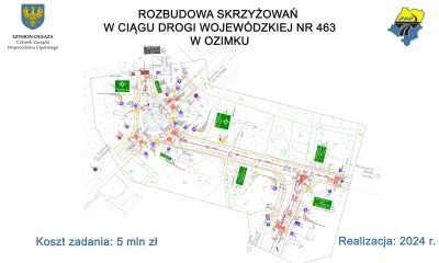 Inwestycja ZDW zakłada rozbudowę skrzyżowań w ciągu drogi wojewódzkiej nr 463 w mieście Ozimek – budowę ronda na skrzyżowaniu z ul. Hutniczą oraz rozbudowę skrzyżowania z ul. Kolejową. Poprawi to bezpieczeństwo w centrum miasta, gdzie znajdują się i przecinają dwie główne drogi – wojewódzka i powiatowa.