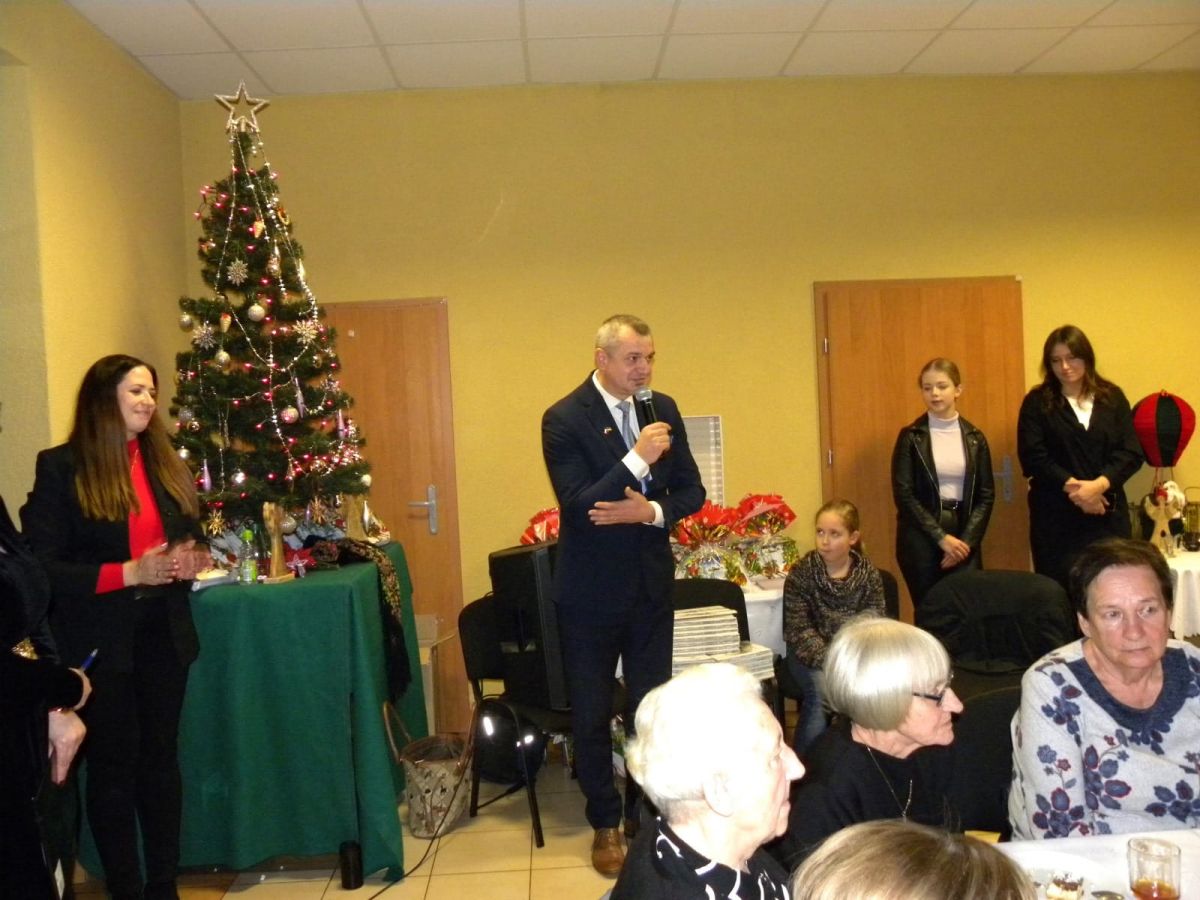 Dalsza część spotkania upłynęła na rozmowach i wspólnym śpiewaniu kolęd. Burmistrz Mirosław Wieszołek złożył seniorom z Grodźca świąteczno-noworoczne życzenia.