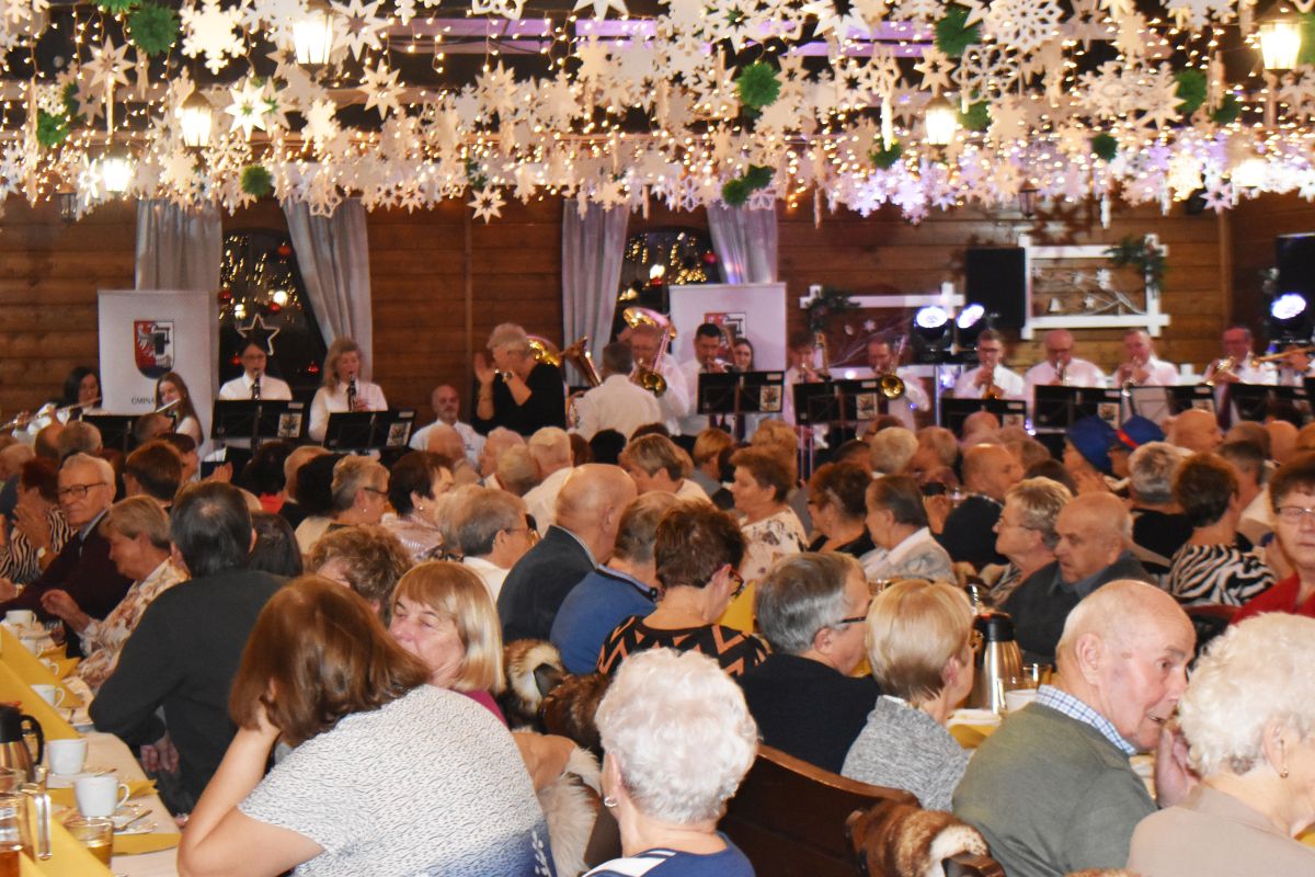 Spotkanie dedykowane starszym mieszkańcom gminy odbyło się w JuraParku w Krasiejowie, a gości przywitała Orkiestra Dęta Szczedrzyk pod batutą Marka Kulika, która dała niepowtarzalny koncert. Muzycy zaprezentowali szeroki repertuar, od klasyki po współczesne aranżacje, demonstrując mistrzowskie opanowanie instrumentów. Dynamika występu w połączeniu z wokalem kilku członków grupy zapewniły niezapomniane muzyczne wrażenia.