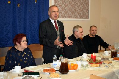 Minutą ciszy uczczono pamięć byłego proboszcza ks. Henryka Okularczyka oraz zmarłych w okresie mijającego roku mieszkańców. Życzenia radosnych Świąt Bożego Narodzenia oraz zdrowia i pomyślności w Nowym Roku przekazali obecnym: zastępca Burmistrza Ozimka Andrzej Brzezina i radny powiatu opolskiego Antoni Gryc, po czym wszyscy złożyli sobie świąteczno-noworoczne życzenia, dzieląc się wzajemnie opłatkiem. Proboszcz ks. Janusz Konofalski odmówił modlitwę przed posiłkiem, złożonym z tradycyjnych wigilijnych potraw. Po nim był poczęstunek ciastem i kawą, długie rozmowy przy wigilijnym stole, a zespół „Dzióbki” uprzyjemniał czas i tworzył przedświąteczny nastrój kolędami i piosenkami o tematyce bożonarodzeniowej.