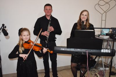 Rodzinny tercet – Antonia, Dominika i Łukasz Nowakowie zachwycili wypełnioną salę niepowtarzalną muzyczną oprawą. Zaprezentowali kolędy i piosenki w języku polskim i niemieckim, wprowadzające świąteczny klimat. Cudowny wokal i ogromny talent instrumentalny zauroczyły publiczność.