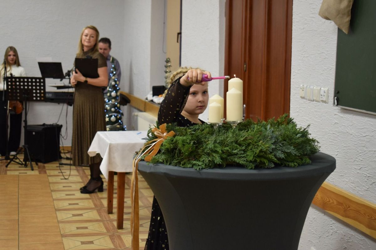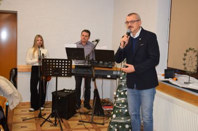 Popołudnie upłynęło w ciepłej, przedświątecznej atmosferze – przy rozmowach, kawie, herbacie, poczęstunku oraz wspólnej kolacji z wigilijnym barszczem i domowymi krokietami. Muzyczną oprawę stworzył Rajmund Wiecha z córką Weroniką, którzy grą na organach i skrzypcach oraz śpiewem polskich i niemieckich piosenek wprowadzili wszystkich w adwentowy nastrój.