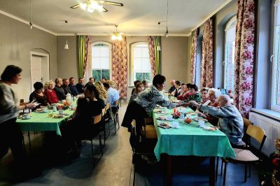 Nie zabrakło serdecznych życzeń, wspólnego łamania się opłatkiem oraz pysznego poczęstunku, który z ogromnym zaangażowaniem przygotowały członkinie koła.