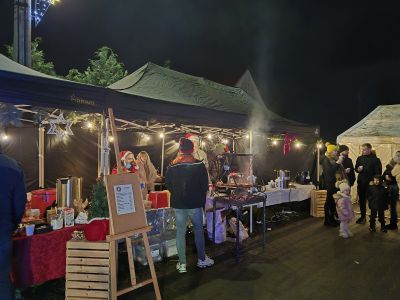 Na uczestników czekało wiele pyszności – domowe wypieki przygotowane przez KGW, aromatyczna kiełbasa z grilla serwowana przez Pub u Dzika, a także liczne regionalne wyroby: syropy z czeremchy, czarnego bzu i sosny, zakwas na barszcz, pierogi kresowe, oscypki z żurawiną, gorące napoje oraz miody, oleje i musztardy z pasieki Leśne Skrzaty.