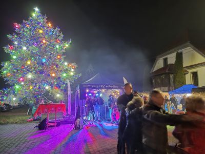 Rozświetlona choinka przyciągała wszystkich swoim blaskiem, a panująca atmosfera była prawdziwie świąteczna i pełna ciepła.