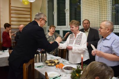 Po ciepłych, skłaniających do zadumy życzeniach skierowanych nastąpiło tradycyjne dzielenie się opłatkiem i składanie życzeń, które wywołały wiele wzruszeń i szczerej radości.