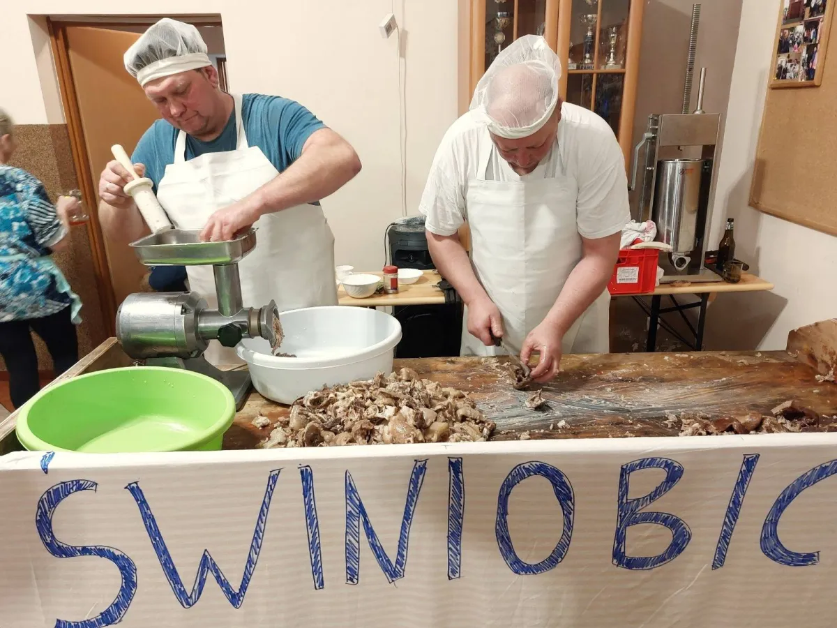 Zapach gotowanego mięsa, świeżych krupnioków i zymloków rozchodził się w sobotę 17 stycznia nad Biestrzynnikiem i przyciągnął wielu mieszkańców do świetlicy wiejskiej, gdzie sołtys Edyta Czaplik z Radą Sołecką i paniami z zespołu Dzióbki „odgrzewała” kolejną odchodzącą do przeszłości tradycję – świniobicie na wsi. Oprócz mieszkańców przybyli też zaproszeni goście: , Marcin Widera - Zastępca Burmistrza Ozimka, radny powiatowy Antoni Gryc i Leokadia Drożdż z Instytutu Śląskiego w Opolu – regionalna koordynatorka projektów mających na celu zachowanie dziedzictwa kulturowego Śląska Opolskiego.
