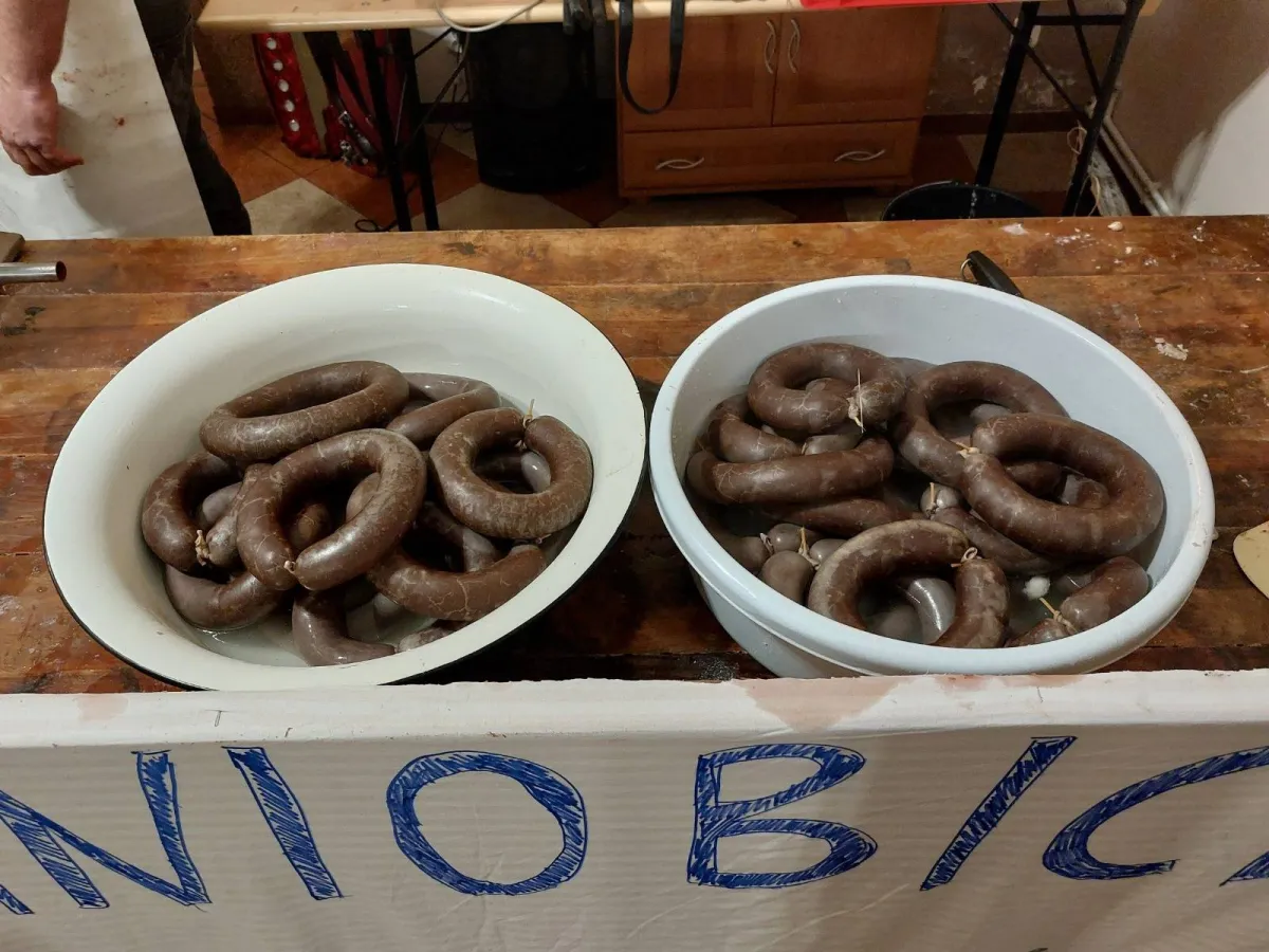 W czasie, gdy przy stołach raczono się tymi przysmakami, a Dzióbki śpiewały ludowe piosenki, masarze przystąpili do nabijania wieprzowych kiszek przygotowaną już masą na krupnioki i zymloki, które partiami trafiały do kotła, a po półgodzinnym parzeniu i schłodzeniu w zimnej wodzie – na talerze biesiadników. Główne role pełnili tutaj: Rafał Łazarz – masarz z Rzędowa i jego dwaj pomocnicy – Damian Kierot i Andrzej Kałużny. Gotowymi już wyrobami wszyscy najedli się do syta, a co zostało – wzięli ze sobą do domów. Oddzielną atrakcją dla dzieci był konkurs rysunkowy na malowanie świnki. Na koniec biorące w nim udział dzieci zaprezentowały swoje prace i dostały przygotowane przez organizatorów nagrody.