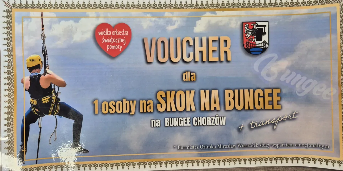 · voucher na skok na bungee w Bungee Chorzów, gwarantujący solidną dawkę adrenaliny.