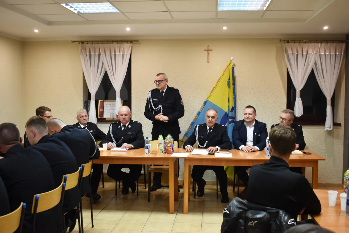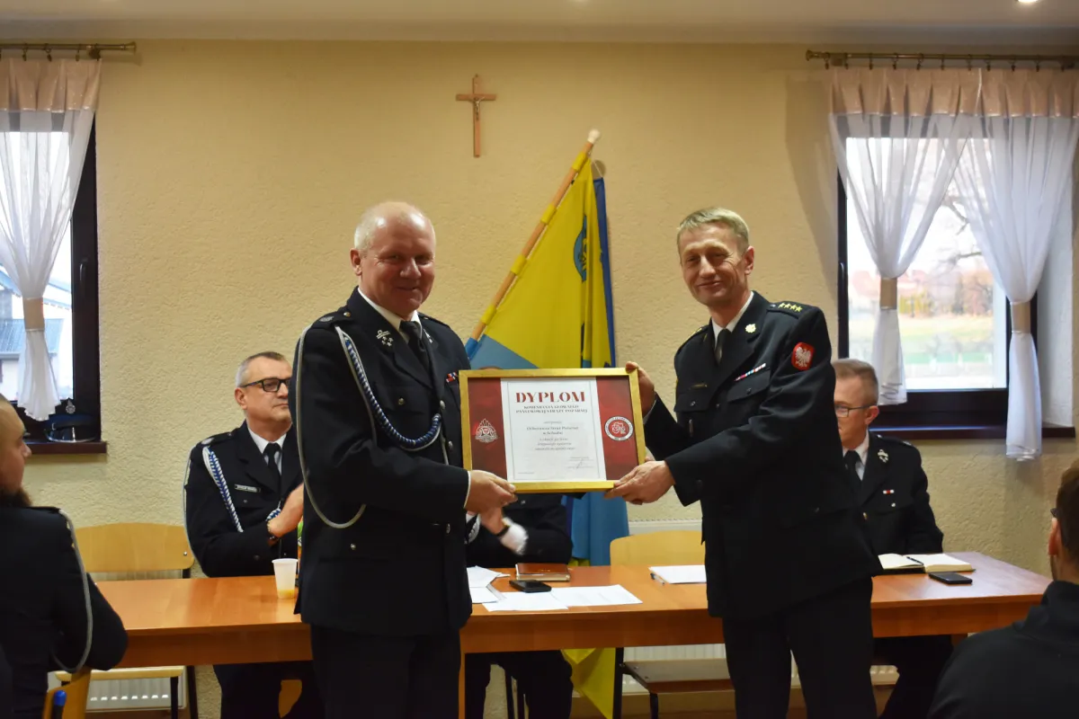 St. kpt. Piotr Wieszołek podziękował ustępującemu zarządowi za owocną współpracę oraz zaangażowanie na rzecz jednostki. W imieniu Komendanta Głównego Państwowej Straży Pożarnej przekazał także na ręce druhów dyplom dla OSP w Schodni z okazji 30-lecia Krajowego Systemu Ratowniczo-Gaśniczego. Przekazał również druhom bieżące informacje dotyczące szkoleń, recertyfikacji, ćwiczeń oraz warsztatów, podkreślając znaczenie ciągłego podnoszenia kwalifikacji przez strażaków ochotników.