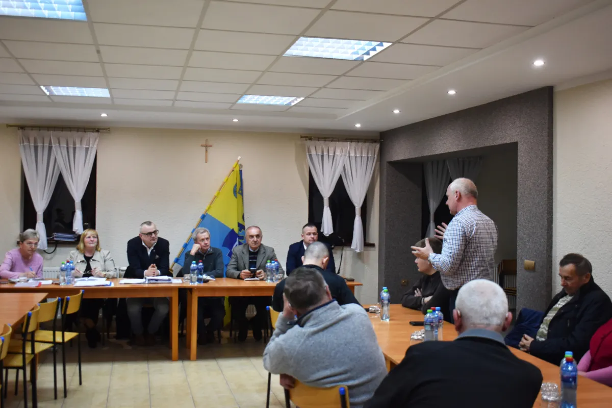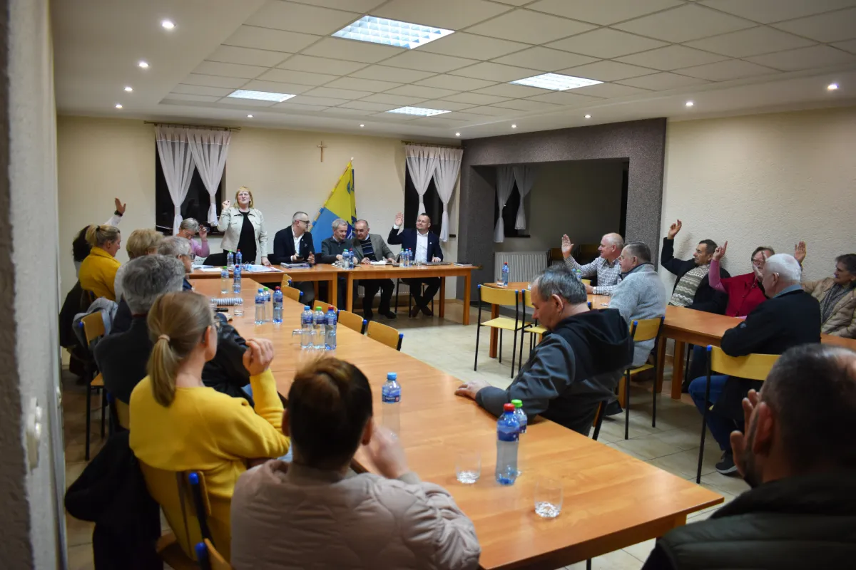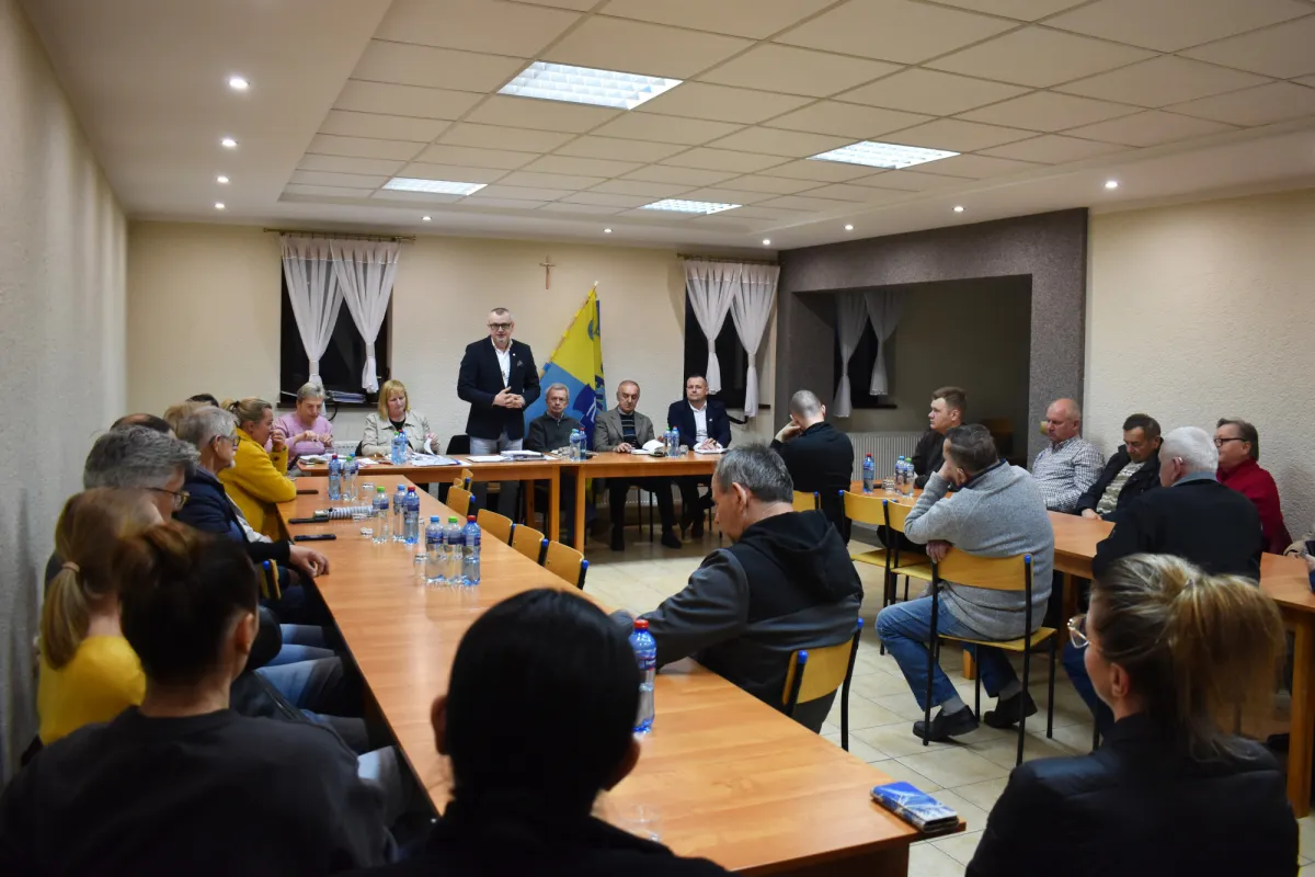 Sołtys powitała zebranych, a w imieniu swoim i rady sołeckiej przedstawiła sprawozdanie z działalności w 2025 roku. W prezentacji szczegółowo omówiła między innymi działania realizowane w ramach funduszu sołeckiego, w tym budowę ogrodzenia placu wiejskiego za remizą OSP.