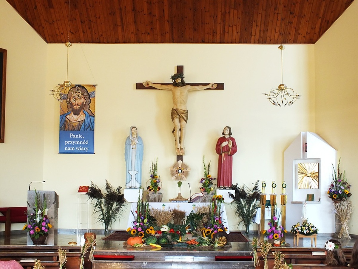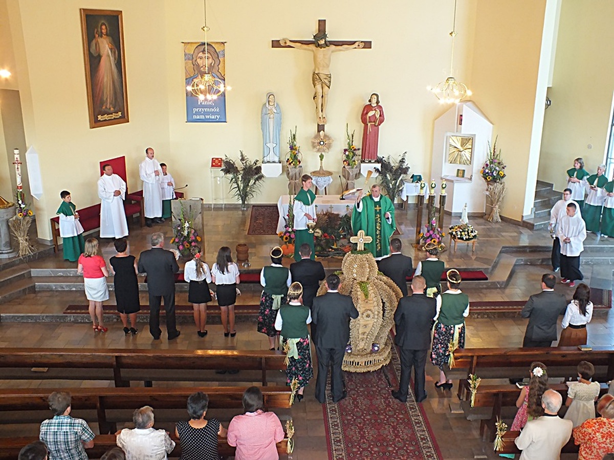 Dożynki rozpoczęły się uroczystą dziękczynną mszą św. w kościele parafialnym w Schodni, odprawioną przez ks. proboszcza Jana Bejnara.