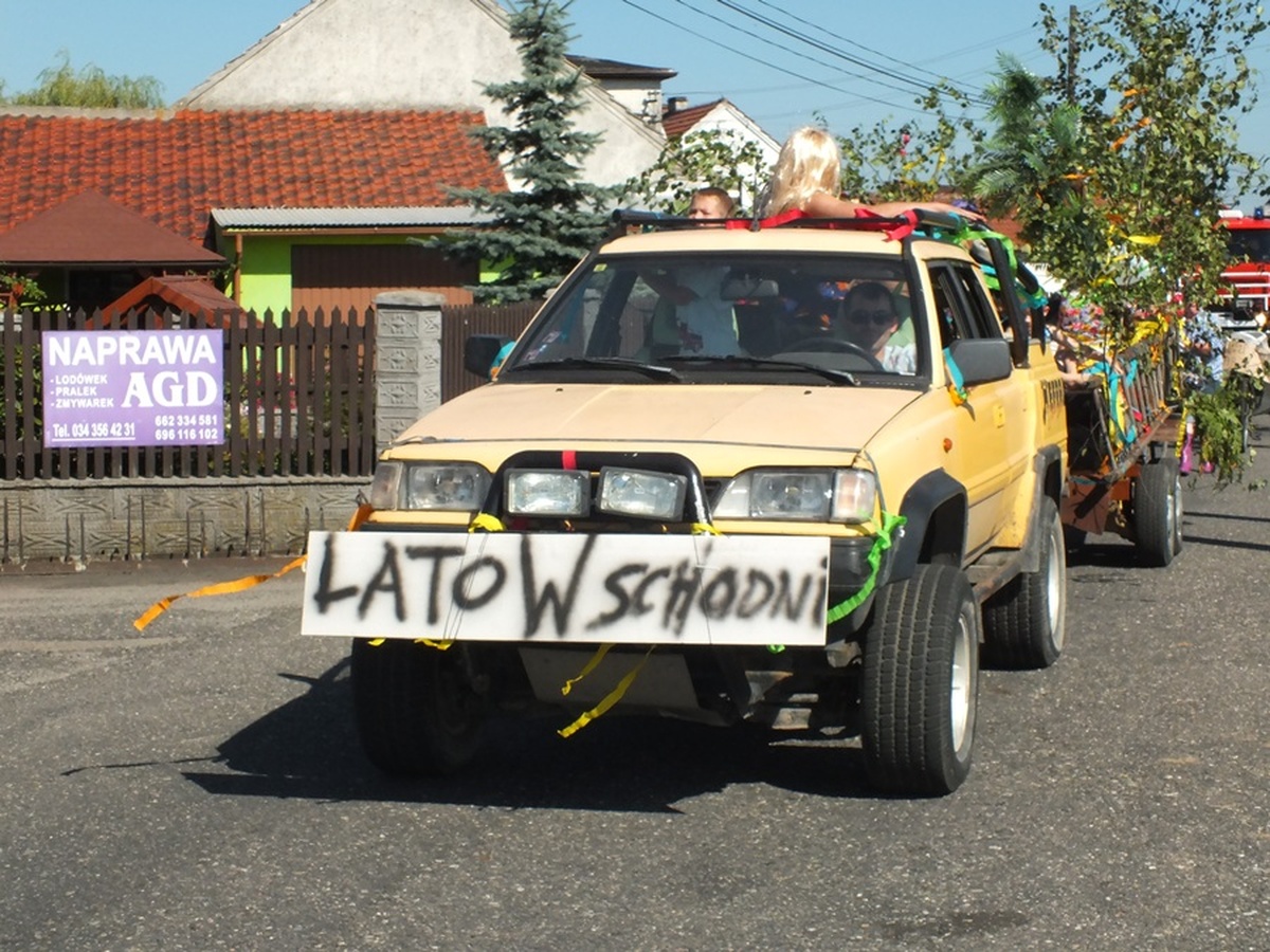 O godz. 14:00 uformowano tradycyjny korowód dożynkowy, który przejechał ulicami miejscowości. W tym roku udział wzięła bardzo duża liczba barwnych wozów dożynkowych i przebierańców, co świadczy o silnym zaangażowaniu mieszkańców w życie kulturalne wsi oraz dbaniu o lokalną tradycję. Przystrojono również miejscowość oraz posesje.