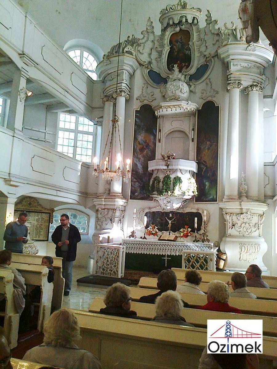Murowany kościół neogotycki w Tułach(Thule) zachwycił wszystkich piękną budowlą i wieżyczkami. Kościół p.w. Matki Boskiej Bolesnej z roku 1856 r. został wybudowany przez rodzinę szlachecką, jako podziękowanie za narodziny syna Emanuela. Zwiedzono również młyn wodny w Laskowicach, działający do dziś. W pięknej restauracji w starych Budkowicach (Alt Budkowitz) odbyła się przerwa obiadowa, po której uczestnicy wyjazdu udali się do Pokoju(Carlsruhe), aby zwiedzić kościół ewangelicko-augsburski i bardzo dobrze pielęgnowany cmentarz ewangelicki. Historię parafii ewangelickiej opowiedział nam tamtejszy duszpasterz.