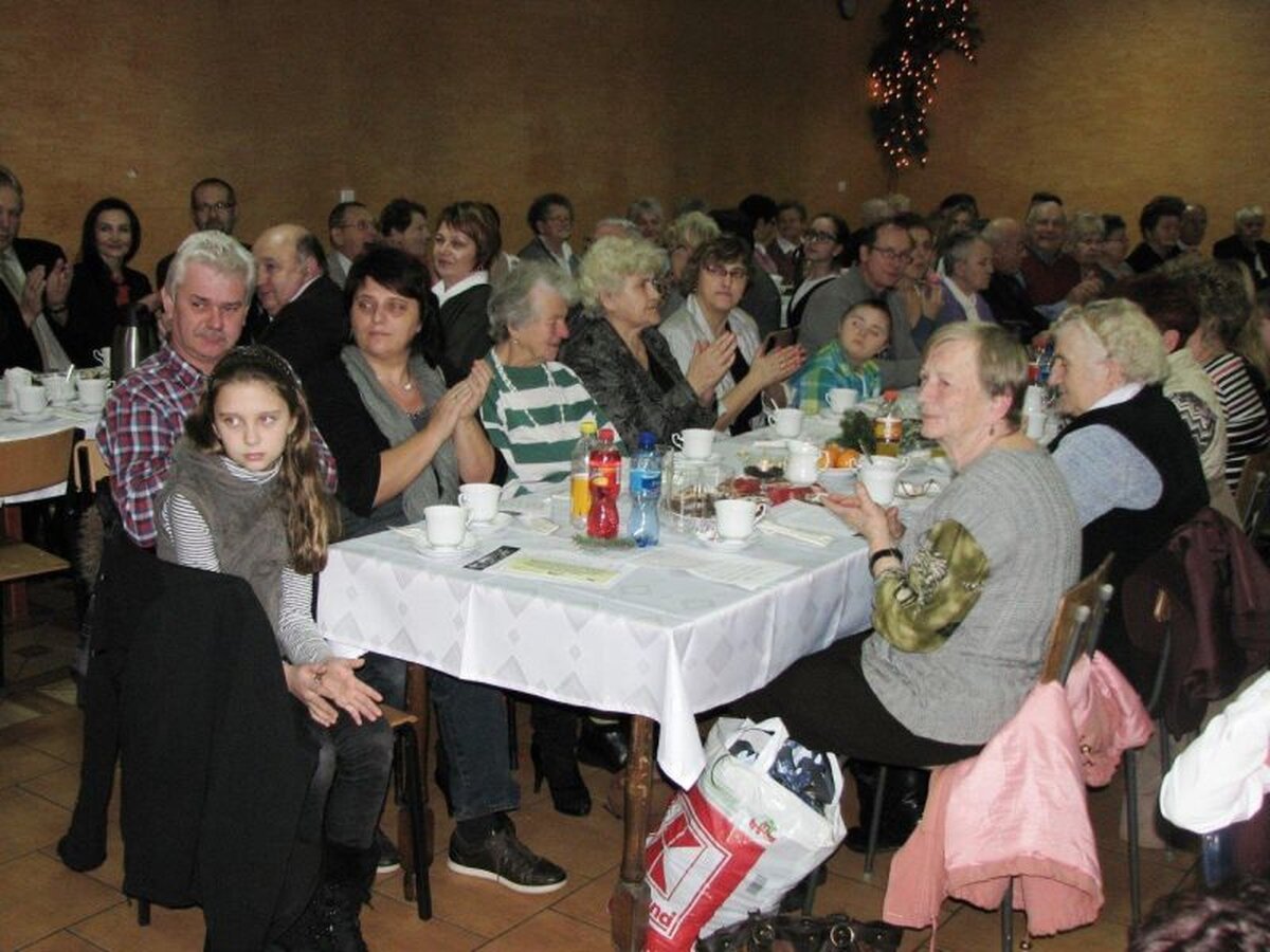 Wystąpił w niej Robert Bartocha i jego przyjaciele z Katowic, solistka Julia Ledwoch ze Szczedrzyka – laureatka pierwszego miejsca na Festiwalu Piosenki Niemieckiej „SuperStar 2013” w Krapkowicach, solista Swen Solisch ze Strzeleczek – zdobywca trzeciego miejsca na tymże konkursie oraz DJ Mateusz Rzepka. W trakcie spotkania na salę przyszedł święty Mikołaj, który paczkami ze słodyczami obdarował wszystkie dzieci oraz członków DFK w wieku powyżej 75. lat. Świąteczno-noworoczne życzenia złożyli: przewodniczący DFK Klaus Leschik i przewodniczący RM Joachim Wiesbach, po czym wszyscy zasiedli do posiłku i wspólnego śpiewania kolęd, przy których, w serdecznej atmosferze, upłynęło to adwentowe spotkanie.
