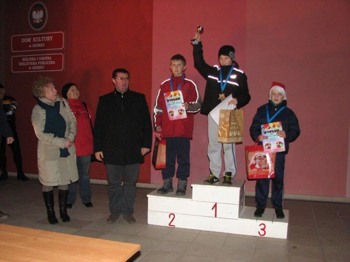 W sumie rozegrano biegi w 18 kategoriach – na dystansach od 150 m dla najmłodszych do 2 km dla seniorów. Po raz pierwszy w biegu uczestniczyły przedszkolaki, po których rywalizowali uczniowie szkół podstawowych, gimnazjów i szkół średnich oraz dorośli w kategoriach open do 45 i powyżej 45 lat. Trasę biegu zabezpieczali policjanci z Ozimka oraz strażacy z jednostek OSP naszej gminy. Sędzią głównym zawodów była Bożena Hasij-Domagała – międzynarodowa sędzina lekkoatletyczna, a na mecie mikołaj wręczał wszystkim zawodnikom medale uczestnictwa w III Biegu Sylwestrowym Ozimek’2013. Po zakończeniu rywalizacji we wszystkich kategoriach wiekowych, odbyła się dekoracja zwycięzców, której dokonał burmistrz Ozimka Marek Korniak z wicestarostą opolskim Leonardą Płoszaj. Najlepsi w swoich kategoriach otrzymali medale, dyplomy, puchary i upominki. Nagrodzono również najmłodszego i najstarszego uczestnika biegu. Wyniki biegów opublikujemy po otrzymaniu od organizatorów oficjalnego komunikatu, a już teraz zapraszamy do obejrzenia fotorelacji z tych udanych zawodów.