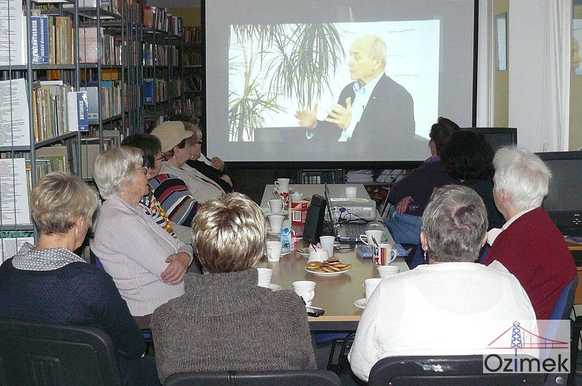 Przez dwa i pół miesiąca Miejska i Gminna Biblioteka Publiczna w Ozimku realizowała wraz z Fundacją Orange innowacyjny projekt edukacyjny dla seniorów pn.” Spotkania z pasjami”. Jego celem było zachęcenie osób starszych do szeroko rozumianej aktywności, do rozwijania różnorodnych zainteresowań, wychodzenia z domu i spotykania się z innymi w przyjaznej przestrzeni publicznej, jaką jest biblioteka. Do życia z pasją zachęcali seniorów ich rówieśnicy, czyli mniej lub bardziej znane osoby w wieku emerytalnym. W jaki sposób? Po prostu opowiadali oni o swoich ulubionych zajęciach w trakcie wideokonferencji na żywo, wykorzystujących nowoczesną technologię internetową - tzw. streaming online. Przez 12 tygodni, w każdy czwartek od 12 września 2013 roku, czytelnia ozimskiej biblioteki zamieniała się w nietypową kawiarenkę z tradycyjną kawą i słodkościami, ale również z ogromnym ekranem, rzutnikiem do projekcji multimedialnych oraz laptopem, który pozwalał uczestnikom spotkania połączyć się z gośćmi zaproszonymi przez Fundację Orange. Osoby zgromadzone w bibliotece mogły nie tylko wysłuchać gości w studio, lecz również zadać własne pytanie poprzez czat internetowy.