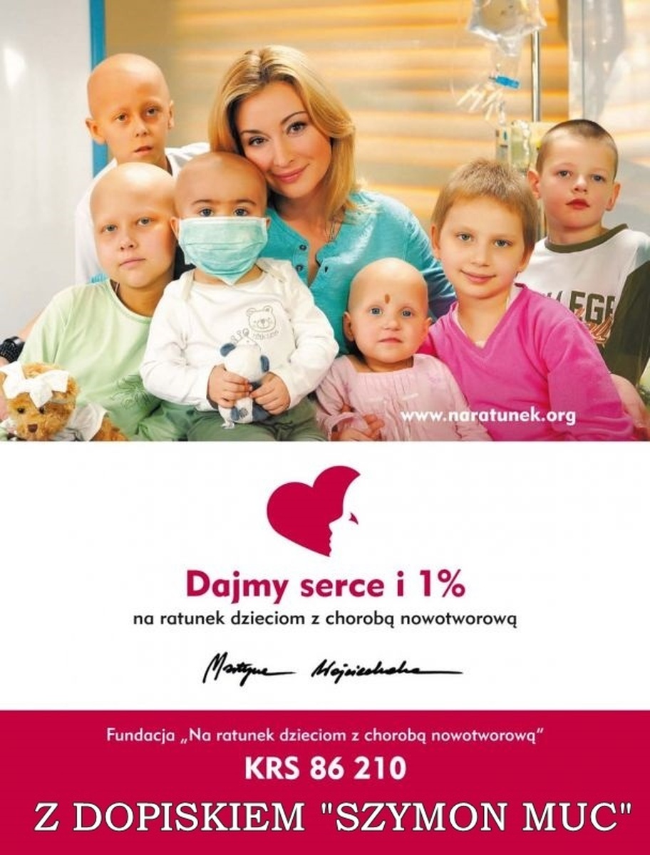 Szymon Muc posiada konto imienne w Fundacji „Na ratunek dzieciom z chorobą nowotworową” z siedzibą we Wrocławiu. Prosimy kierować wpłaty na kotno: