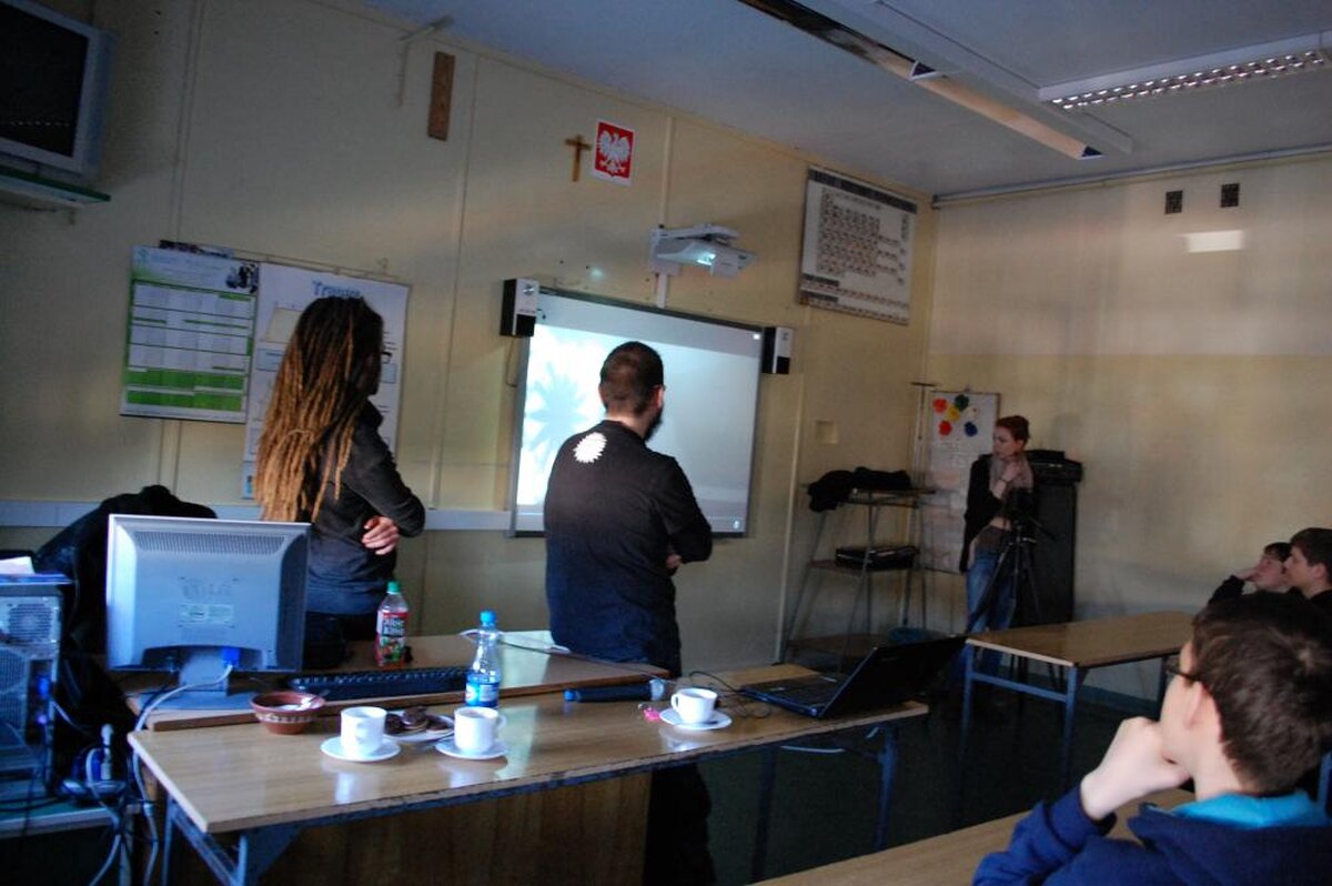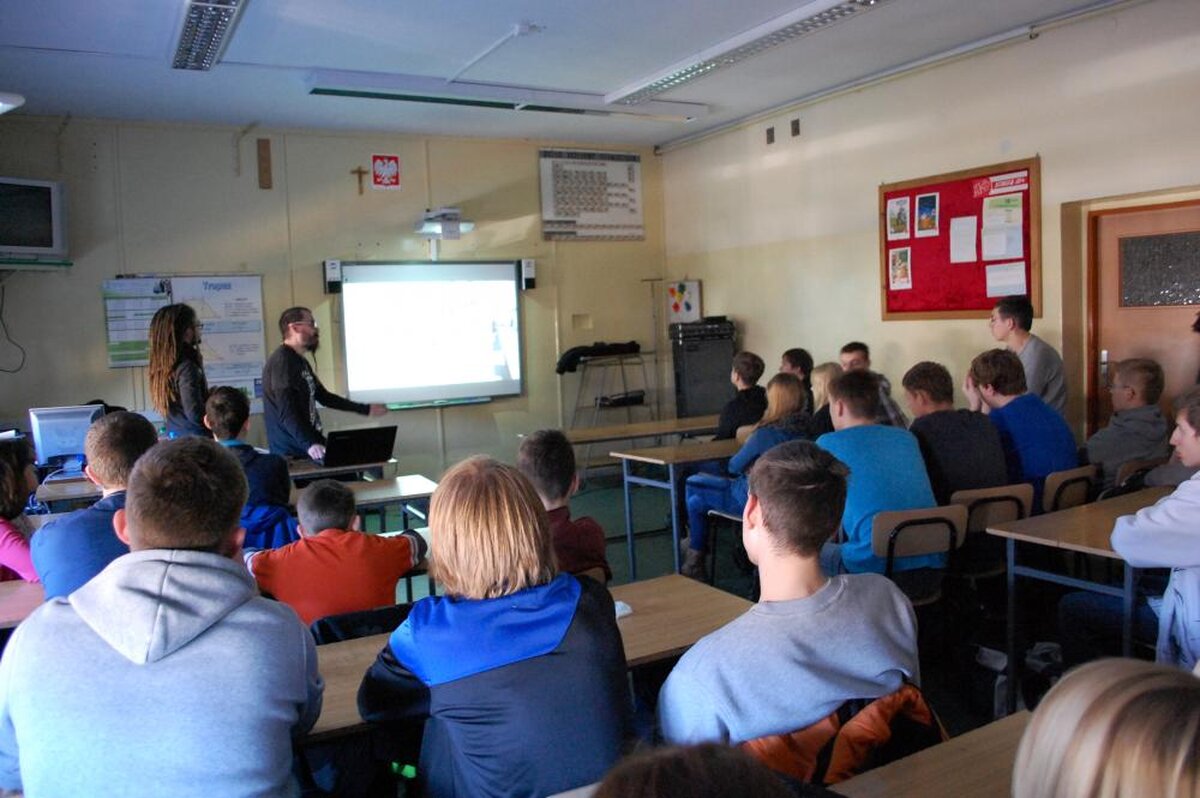 Paulina Ptaszyńska, Bartosz Posacki oraz Michał Misiura z Instytutu Sztuki Uniwersytetu Opolskiego gościli podczas prelekcji w ZS Ozimek. Nasi artyści zaprezentowali Instytut Sztuki UO, jego działalność, bazę dydaktyczną. Uczniowie naszego zespołu mogli obejrzeć prace studentów oraz prelegentów z zakresu animacji filmowej, grafiki komputerowej, mappingu. Dwugodzinna prezentacja wzbudziła bardzo duże zainteresowanie wśród uczniów, być może niektórzy z nich w nowoczesnej multimedialnej sztuce znajdą dla siebie miejsce. Dziękujemy serdecznie naszym gościom za spotkanie.