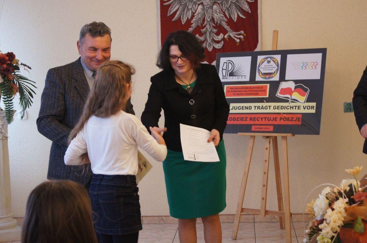 W eliminacjach wzięło udział 32 uczestników z 9 szkół z terenu naszej gminy. Jury w składzie: Johanna Lemke-Prediger, Józef Kotyś i Marcin Widera przyznało następujące miejsca i wyróżnienia: