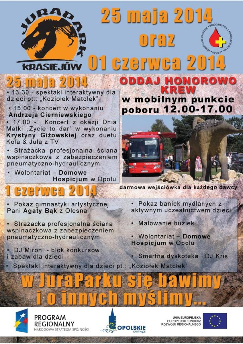 Zapraszamy do JuraParku w Krasiejowie 25 maja oraz 1 czerwca czeka wiele atrakcji. Szczegóły na plakacie.