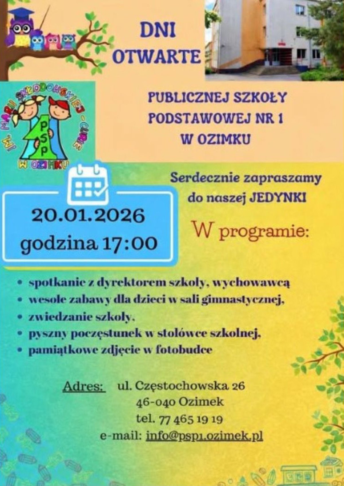 Publiczna Szkoła Podstawowaj nr 1 w Ozimku zaprasza na na Dzień Otwarty