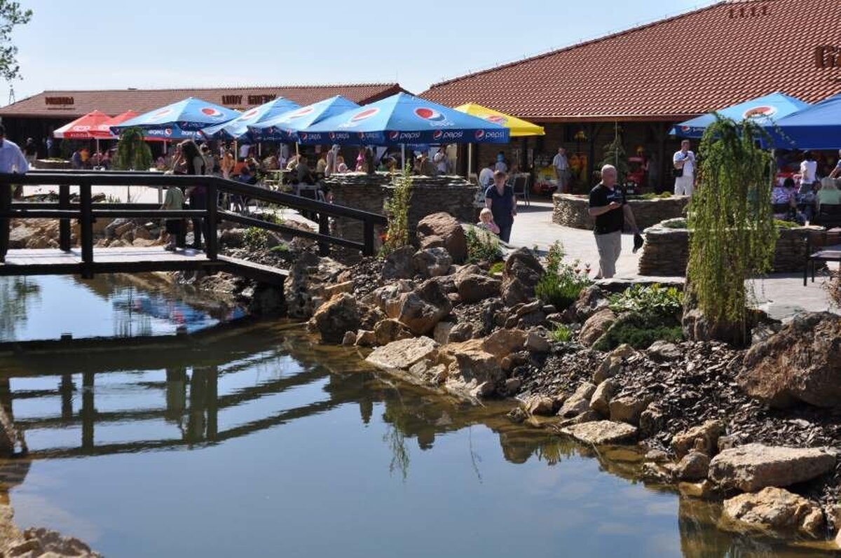 Na głównym dziedzińcu znajduje się szereg sklepików. Można tam zakupić pamiątki, zabawki- dinozaury, tematyczne encyklopedie, piękne kamienie czy minerały z drugiego końca świata.