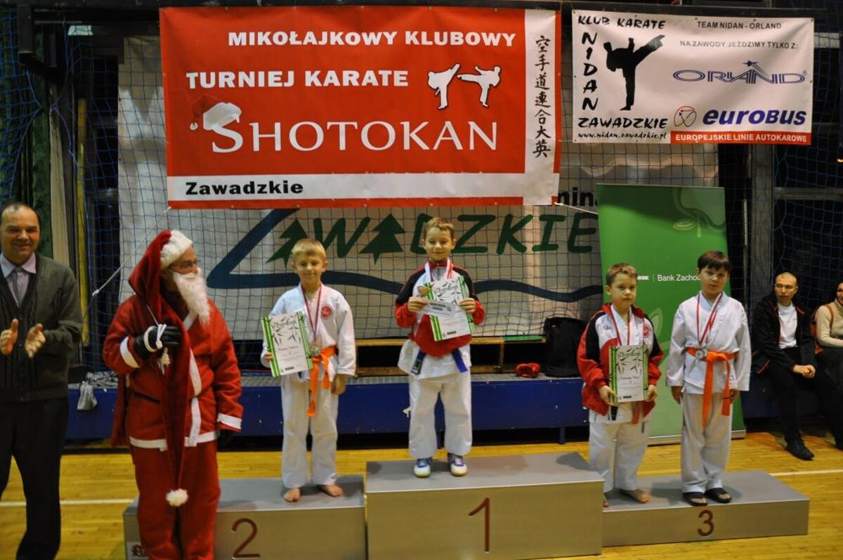 Tradycyjnie już w okolicach Mikołaja Klub Nidan zorganizował dla swoich wychowanków wewnętrzny Turniej Karate. W zawodach uczestniczyło około 80 zawodników w wieku 5-14 lat ze wszystkich sekcji. Rozegrano 17 konkurencji: kata, kumite na fantomach oraz na torze sprawnościowym. Zmagania trwały około 2 godzin, po czym nastąpiła część oficjalna, w której swoja obecnością zaszczycili: Burmistrz Ozimka Jan Labus, Burmistrz Dobrodzienia Róża Koźlik, Przewodniczący Rady Miejskiej w Zawadzkiem Stanisław Kiełek, Prezes Firmy Orland Łukasz Orłowski, Państwo Krystyna i Roman Sprancel z Restauracji „Zielona Oberża” w Osieku, Pani Dorota Kotylak-Skrzypiec przedstawiciel Banku Zachodniego głównego sponsora Turnieju.