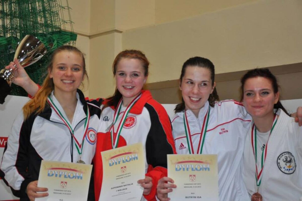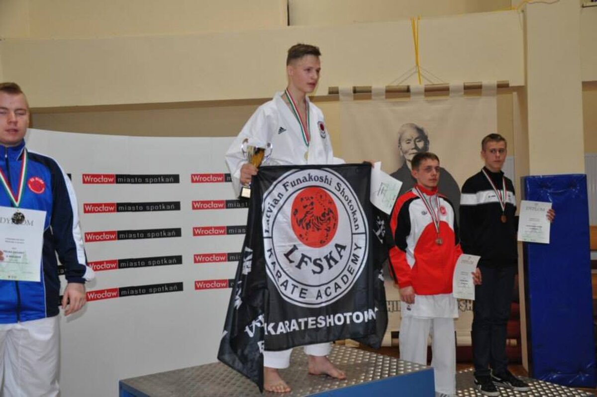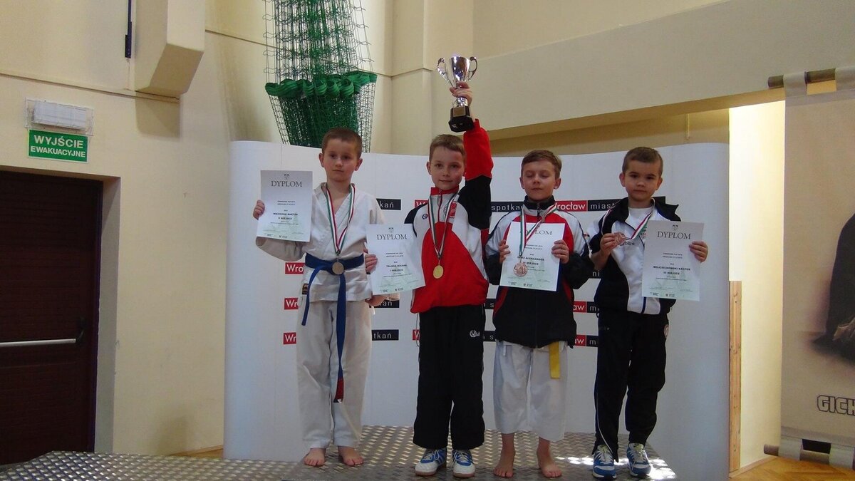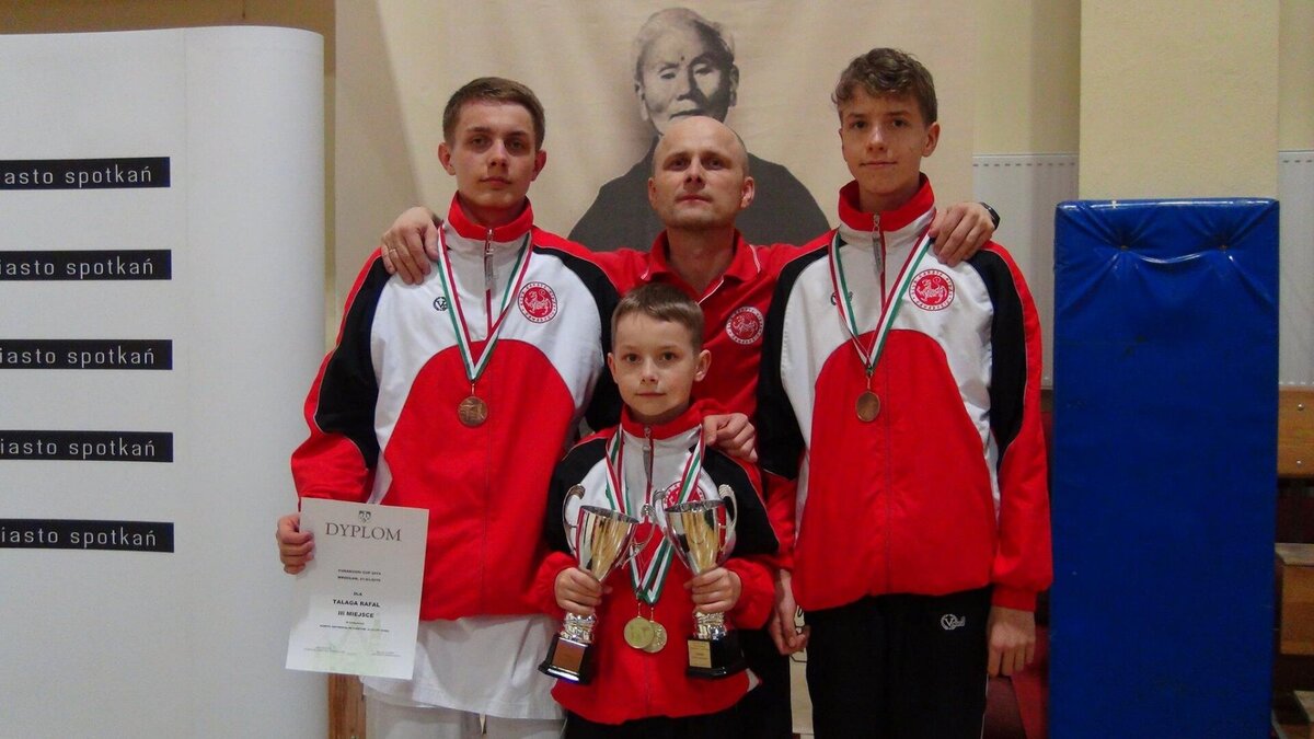 Przy okazji Seminarium od kilku już lat organizator, czyli AZS Wrocław organizuje w tym samym czasie turniej „Funakoshi CUP”. W tym roku do rywalizacji przystąpiło około 400 zawodników z Litwy, Ukrainy, Czech i Polski. Naszą sekcję na zawodach reprezentowali: Natalia Szponder, Mateusz Łapot, oraz bracia Michał i Rafał Talagowie. Jak można było się domyślać nasi karatecy nie wrócili z pustymi rękami. Natalia wystartowała w konkurencji kumite seniorek gdzie nie tracąc ani jednego punktu stanęła na najwyższym stopniu podium. Świetny występ zaliczył również Mateusz, który w kumite chłopców -63 zdobył brąz. Starszy z braci Rafał również startował w kumite, lecz ze względu na małą ilość zawodników w tej kategorii organizator postanowił połączyć konkurencje. I tak po 4 walkach 3 wygranych i 1 przegranej Rafał wywalczył najniższy stopień podium. Natomiast młodszy z braci Michał jak już zdążył nas przyzwyczaić nie miał sobie równych zarówno w kata jak i kumite zgarniając w obu konkurencjach krążki z najcenniejszego kruszcu. Zawodnicy mogą uznać ten turniej do bardzo udanych a wyniki potwierdzają wysoką formę na początku sezonu startowego. Gratulujemy