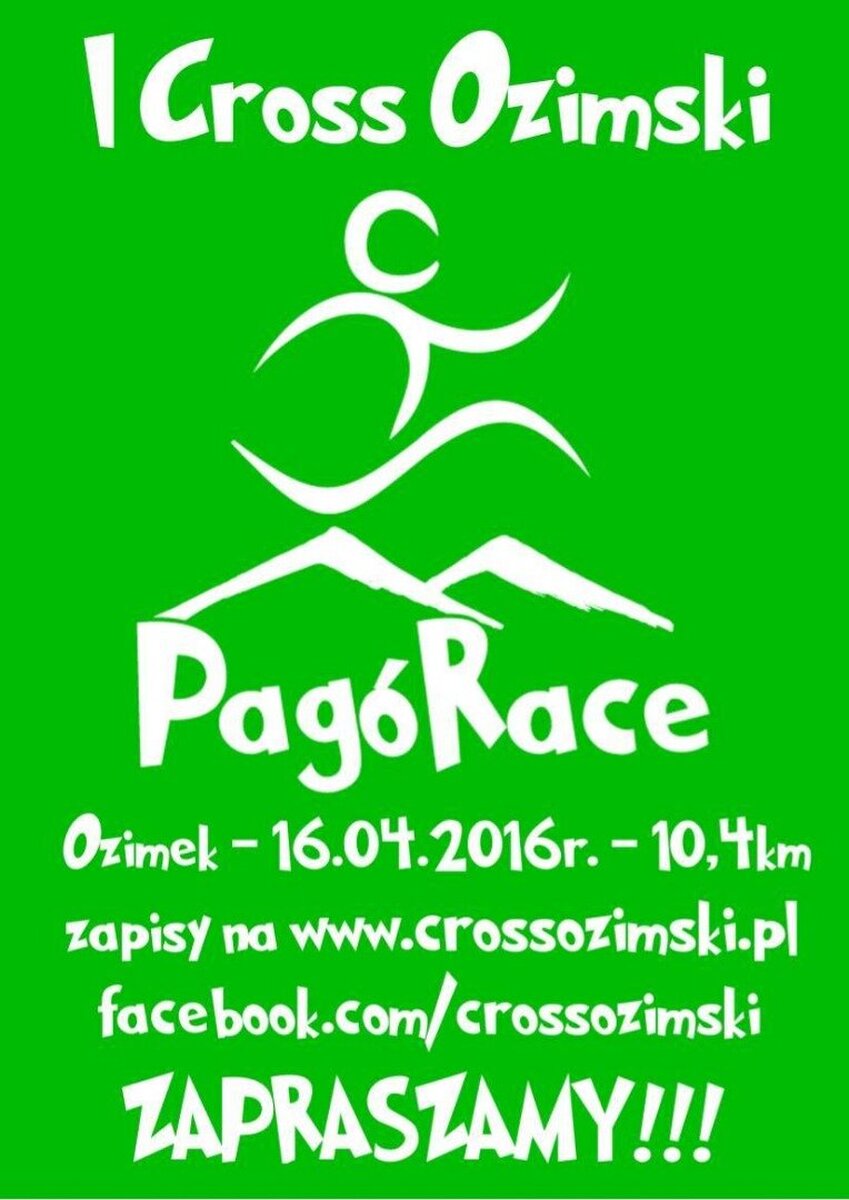 Już 16 kwietnia, w Ozimku odbędzie się pierwszy Cross Ozimski – PagóRace. Będzie to pierwsza edycja biegu terenowego na 10 km po ozimskim lesie, naszpikowanym morenowymi pagórkami, które dadzą uczestnikom choć namiastkę górskiego biegania. Pomysłodawcą imprezy jest Rafał Słociak, opolski ultramaratończyk i biegacz górski, który właśnie na przyszłej trasie zawodów stawiał swoje pierwsze biegowe kroki. Jak wyjaśnia organizator, trasa biegu jest relatywnie trudna, techniczna, miejscami grząska i bardzo wolna, więc na życiówkę nie ma co liczyć. Niemniej zapewnia o „samych pozytywnych wrażeniach i atrakcyjnym pakiecie startowym” Podczas imprezy będzie też promowana sztafeta charytatywna Pomarańczowa PoMOC, podczas której biegacze i rowerzyści przemierzą 5000km niosąc ratunek potrzebującym dzieciom oraz chorym na depresję. Sztafeta ta będzie organizowana przez stowarzyszenie Rajsport Active, które jest również współorganizatorem I Crossu Ozimskiego. Po zawodach i dekoracji najlepszych biegaczy, odbędzie się losowanie atrakcyjnych nagród. Ambicją organizatorów jest stworzenie z PagóRace cyklicznego wydarzenia biegowego, które w przyszłości będzie w stanie konkurować atrakcyjnością z najlepszymi imprezami w regionie.