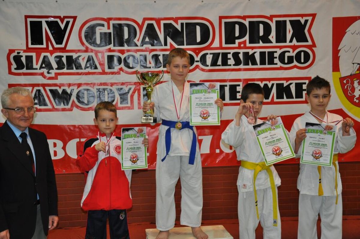 Bardzo owocne w medale były ostatnie dwa weekendy dla Ozimskich Karateków. LZS Karate-do z Głubczyc 27.04 zorganizował GP Śląska Polsko-Czeskiego, gdzie Michał Talaga zdobył złoto w konkurencji kata ind. deklasując pozostałych uczestników wynikami 5:0 w każdej walce. W kumite indywidualnym wystartował w starszej kategorii gdzie ustąpił miejsca tylko jednemu zawodnikowi zdobywając srebro. Nie gorzej poszło jego starszemu bratu Rafałowi, który wywalczył dwa złote krążki. Pierwszy w konkurencji kata indywidualnym, drugi w kata drużynowym. W zawodach startowali jeszcze Natalia Ledwig zdobywając brąz w kata i kumite indywidualnym oraz Mateusz Łapot brąz w konkurencji kata indywidualnym.