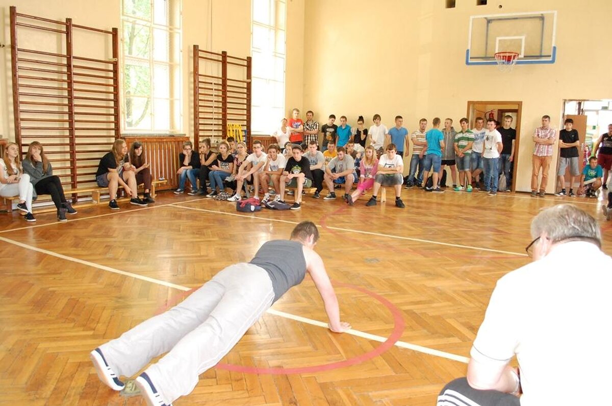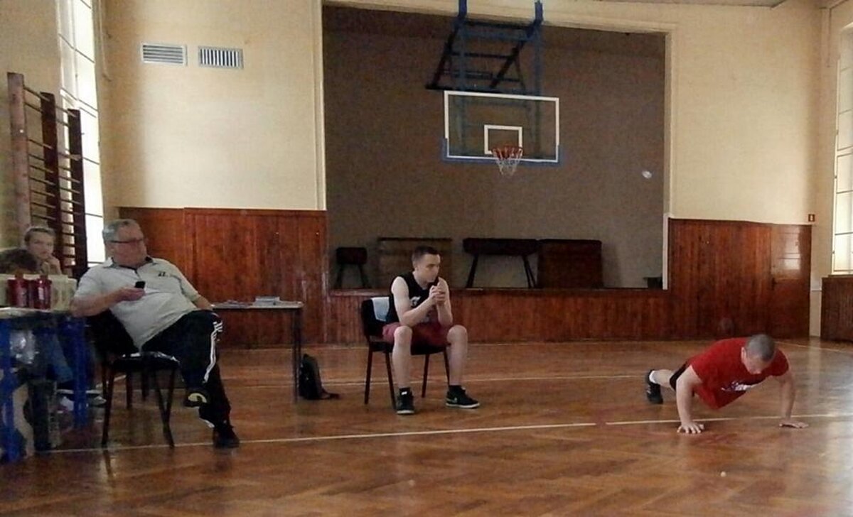Nauczyciele: Piotr Bąk 87 pompek (3 min.)