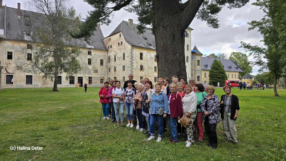 Seniorzy z Czech jak zawsze przywitali naszych gości bardzo serdecznie i zaprosili na wspólny obiad, po którym wszyscy uczestnicy spotkania wraz ze Starostą Rymarzowa Luděk Šimko, Burmistrzem Ozimka Mirosławem Wieszołkiem oraz Pełnomocnikiem Burmistrza Ozimka ds. polityki senioralnej Panią Haliną Oster wybrali się na zamek w Janovicach, który należał do szlacheckiej rodziny Harrachów. Podczas wycieczki usłyszeli bardzo ciekawy wykład o tej rodzinie i jej związkach z regionem Rymarovsko. Wieczorem wszyscy razem usiedli do wspólnego grillowania dziczyzny.