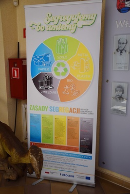 - Wykonane zostały materiały informacyjno-edukacyjne w postaci ulotek i roll-upów oraz naklejek na schody we wszystkich szkołach podstawowych na terenie gminy,