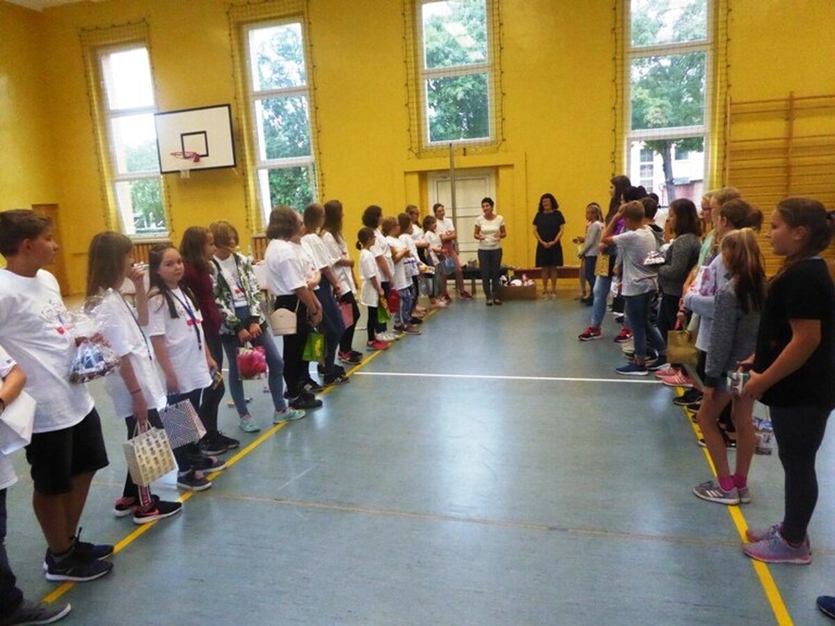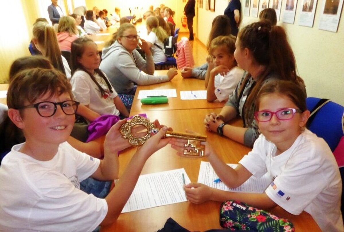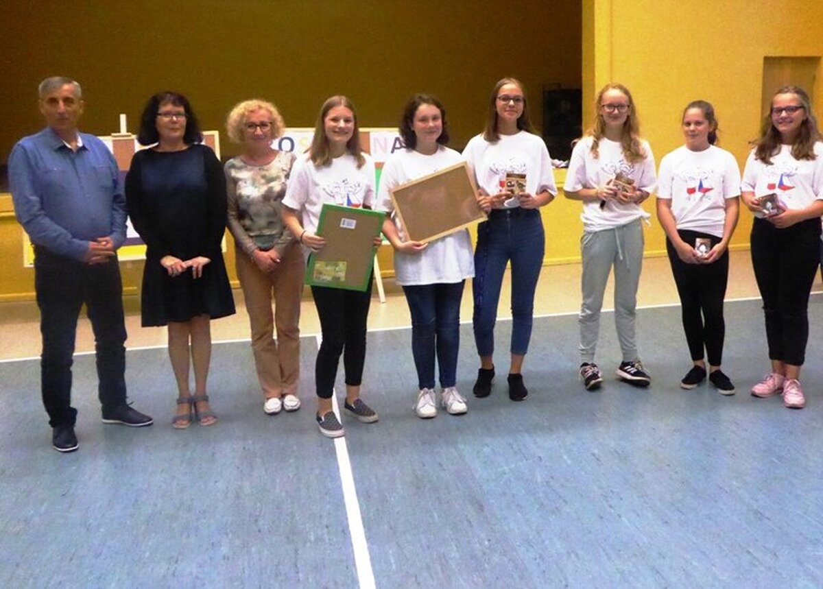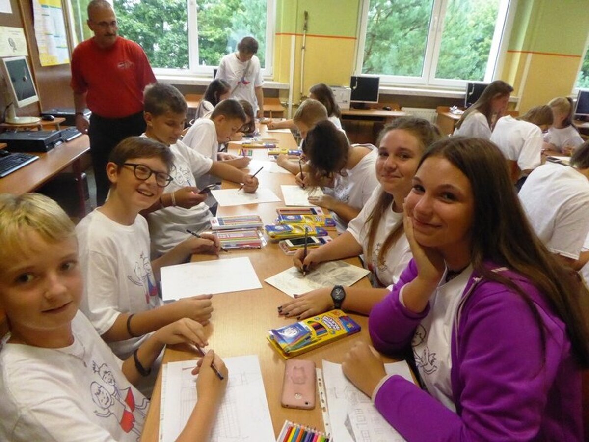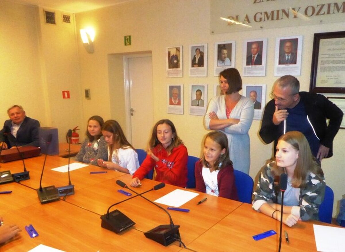 Uczniowie z partnerskiej Zakladni Skola w Rymarovie gościli w naszej JEDYNCE. Wspólnie realizowaliśmy projekt gminy Ozimek i Rymarova pod nazwą " NIC O NAS, BEZ NAS - ROSNĄ NAM MŁODZI SAMORZĄDOWCY". To autorski projekt mający na celu poznanie przez uczniów siebie i swoich partnerów z zagranicy. Pouczająca lekcja o HONOROWYCH OBYWATELACH naszego miasta, o PARTNERSTWIE MIĘDZYNARODOWYM, odbyła się w sali narad ozimskiego Urzędu Gminy i Miasta. Zostali na nią zaproszeni ważni goście: burmistrz JAN LABUS, wiceburmistrz ZBIGNIEW KOWALCZYK, przewodniczący Rady Miejskiej KRZYSZTOF KLESZCZ. Szczególnie ważnym gościem była sekretarz gminy BARBARA DURKALEC, która wspiera nasze partnerstwo od samego początku, od jedenastu lat. Uczniowie dowiedzieli się, co to jest samorząd, czym się zajmują władze miasta, co robią radni. Kim są Honorowi Obywatele - czterech Czechów - i jak wygląda Akt Partnerstwa z Rymarovem. Z dużym zainteresowaniem młodzi samorządowcy obejrzeli symboliczny KLUCZ DO BRAM MIASTA. Dzieciaki podziękowały naszym gościom za spotkanie i przekazaną wiedzę symbolicznym kwiatkiem, po czym wszyscy poszli zwiedzać nasze urokliwe miasteczko. Czesi zobaczyli nasze zabytki, ciekawe miejsca, a potem zaczęły się zajęcia plastyczne w szkole. Wszyscy zrobili prace - "OZIMEK-RYMAROV- tu mieszkam, tu sie uczę i bawię". Prace były oceniane przez międzynarodowe jury - czeskie dzieci wybierały najlepsze prace polskich dzieci, a polskie - czeskich rówieśników. Nagrody dla najlepszych wręczali burmistrz Jan Labus oraz dyrektor naszej szkoły Danuta Kłysińska. Po trudach pracy umysłowej przyszedł czas na zajęcia sportowe, dzieci miały okazję zintegrować się podczas zabaw sportowych. Jedni ćwiczyli, inni kibicowali, były pozytywne emocje, śmiech i radość. A potem była pizza, pyszna, smakowita i pachnąca. I wszyscy rozeszli się do domów, a Czesi pojechali na nocleg do gościnnego JuraParku.