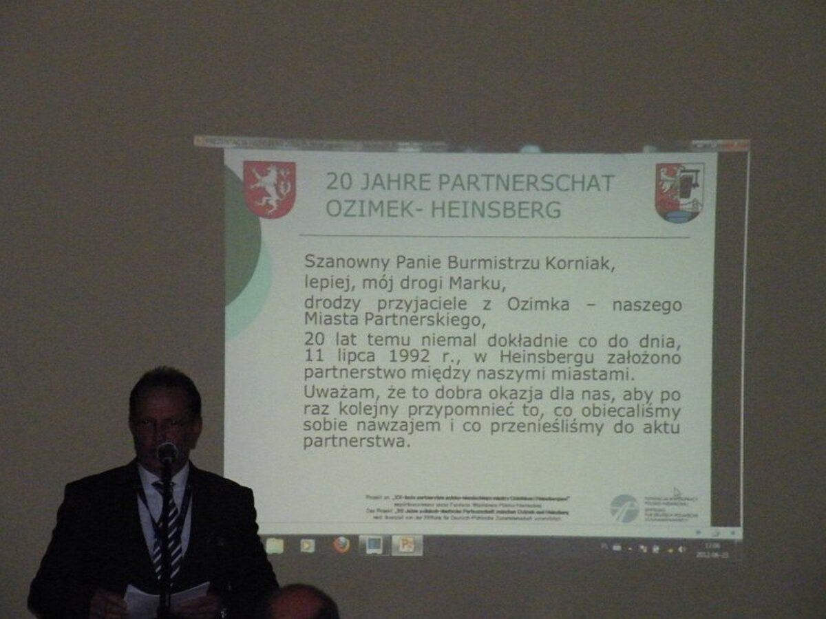 W dniach 22-24 czerwca 2012r. w Ozimku został zrealizowany projekt pn. „XX-lecie partnerstwa polsko-niemieckiego między Ozimkiem i Heinsbergiem” współfinansowany przez Fundację Współpracy Polsko-Niemieckiej.
