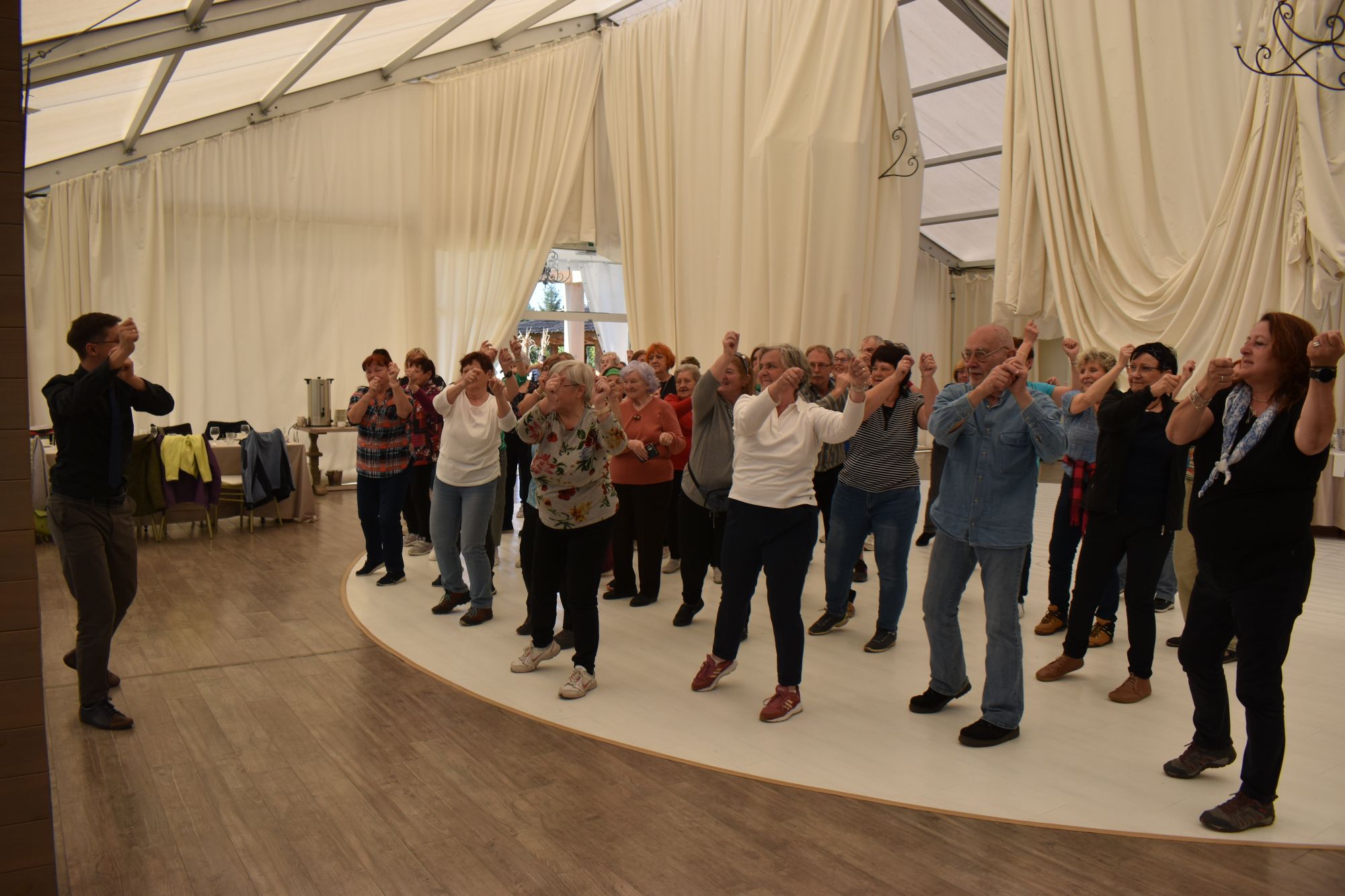 Gospodarzem spotkania byli seniorzy z Ozimka, którzy z wielką radością przyjęli swoich czeskich przyjaciół. W programie znalazły się warsztaty muzyczne, wspólne śpiewanie, a także wieczorne integracje przy dźwiękach muzyki. Wielką atrakcją był zaproszony gość, niezwykle radosny i energiczny człowiek, Jan Krutul, który jest wspaniałym dyrygentem, kompozytorem, chórzystą. Dzięki jego prowadzeniu seniorzy mogli spróbować swoich sił z batutą, stworzyć improwizowaną orkiestrę oraz poznać wiele ciekawostek ze świata muzyki – zarówno tej klasycznej, jak i współczesnej. Warsztaty prowadzone były przy udziale Haliny Oster, która swoją działalnością na co dzień zrzesza bardzo liczną grupę seniorów, oferując im szereg zajęć, aktywności, a także ciekawych wyjazdów. Odpowiadała również za przygotowanie tego pięknego wydarzenia oraz czuwała nad jego przebiegiem.