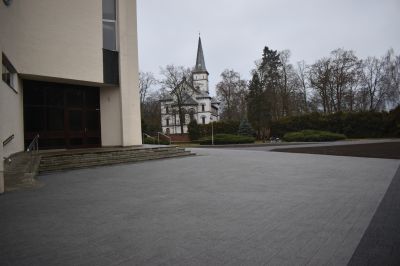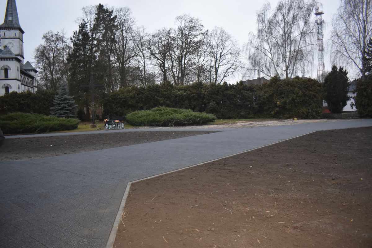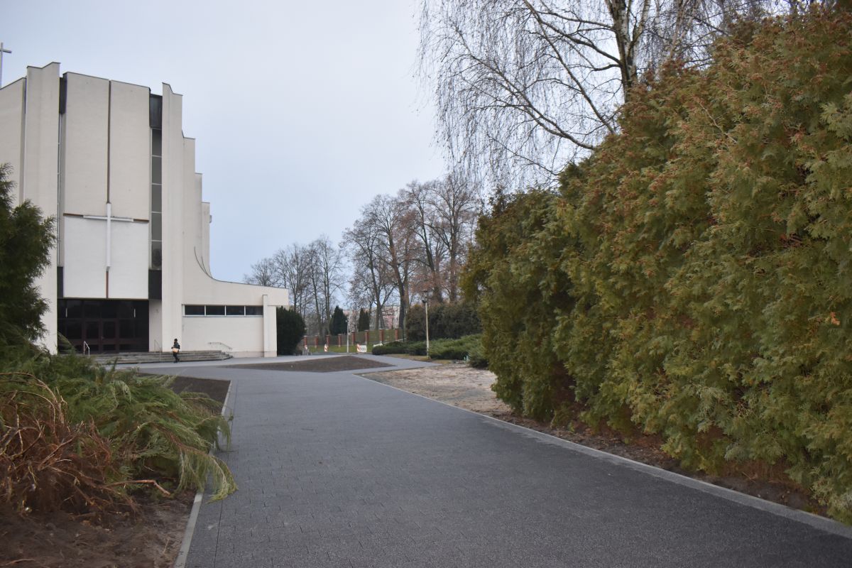 W ramach wykonanych robót zdemontowano stare płyty betonowe znajdujące się na placu, przeprowadzono regulację i przygotowanie terenu pod planowane nasadzenia zieleni, a także wybrukowano powierzchnię nową kostką, nadając jej reprezentacyjny i uporządkowany charakter. Zrealizowane działania znacząco wpłynęły na poprawę wyglądu oraz komfortu użytkowania tego miejsca przez mieszkańców.