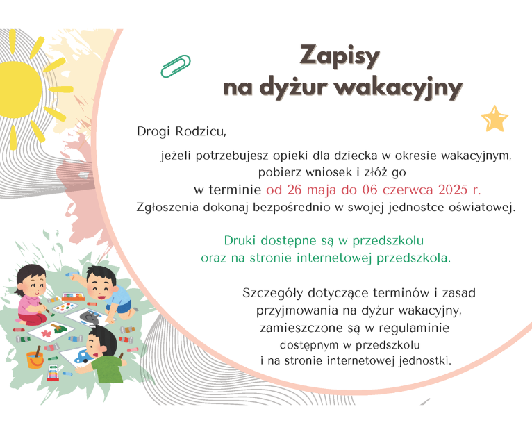 Dyżur wakacyjny przedszkoli w naszej gminie