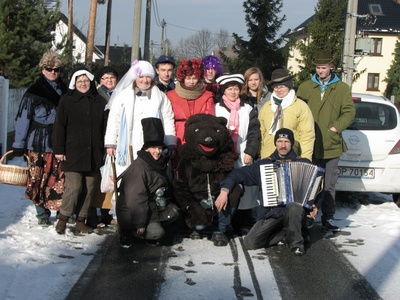 7 lutego od rana niedźwiedź chodził po Krzyżowej Dolinie. W 19-osobowym korowodzie przebierańców, z muzyką i śpiewem, odwiedzał wszystkie domostwa, tańczył z gospodyniami, a domownikom składano najlepsze życzenia, zbierając od wszystkich dat ... [ więcej ]