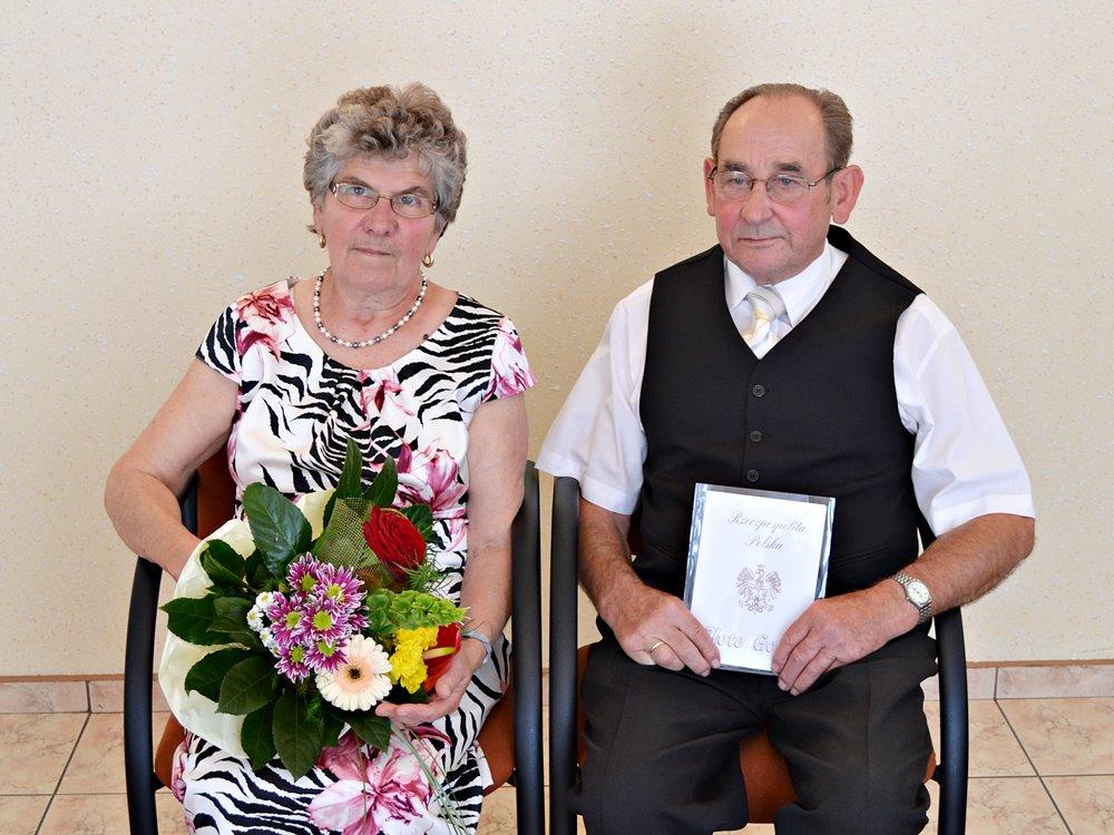 Szmaragdowe Gody Małżeńskie (55.lecie pożycia) obchodzili Lidia i Józef Wachowicz (z wnukami Tomaszem, Angeliką i Grzegorzem), Emilia i Władysław Wierny (z córką Lucyną, wnuczką Asią,i prawnukami Magdą i Tomaszem) oraz Czesława i Władysław Matusz (z wnuczką Olą) wszystkie pary z Grodźca, Ruta i Jan Dej oraz Danuta i Henryk Mazur (z synową Izabelą, żona nie mogła uczestniczyć z powodów zdrowotnych) obie pary z Ozimka, jak również Jadwiga i Tomasz Wieszołek (z synową Eweliną i wnuczką Darią) ze Szczedrzyka. Natomiast Złote Gody Małżeńskie (50. lecie pożycia) świętowali Gertruda i Alfons Kokot (z wnukiem Damianem i jego żoną Asią) Małgorzata i Reinhold Feliks (z córką Gabrysią i synem Joachimem) obie pary z Pustkowia oraz Hildegarda i Wilhelm Czyrnia z Dylak. Ponadto złote gody obchodzili Katarzyna i Józef Adamscy z Grodźca, którzy nie mogli osobiście uczestniczyć w uroczystościach.