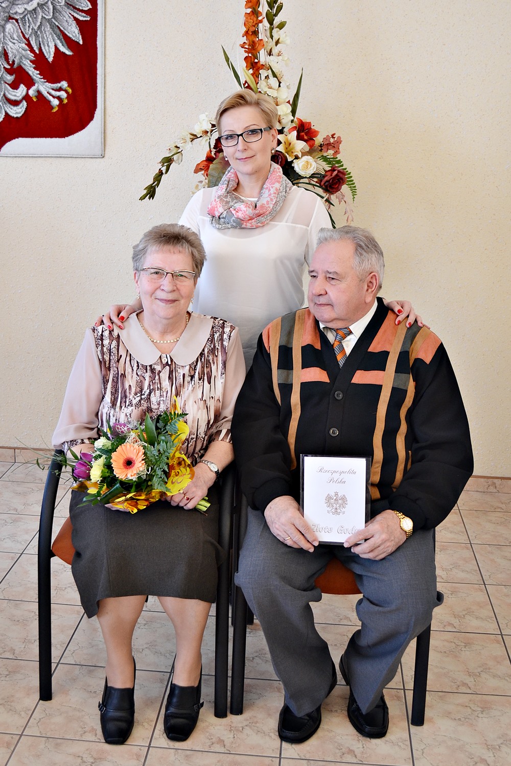 Szmaragdowe Gody Małżeńskie (55. rocznicę zawarcia związku) obchodzili Józefa i Jan Niedźwiedź (pani Józefa przyjechała z wnuczką Asią i odebrała gratulacje również w imieniu męża, który ze względów zdrowotnych nie mógł uczestniczyć w uroczystości)z Grodźca, natomiast Złote Gody Małżeńskie (50. rocznica) świętowały pary dwie pary ze Schodni: Jadwiga i Paweł Jończyk (w towarzystwie córki Kariny)oraz Renata i Helmut Widera (z córką Julitą i synem Marcinem).